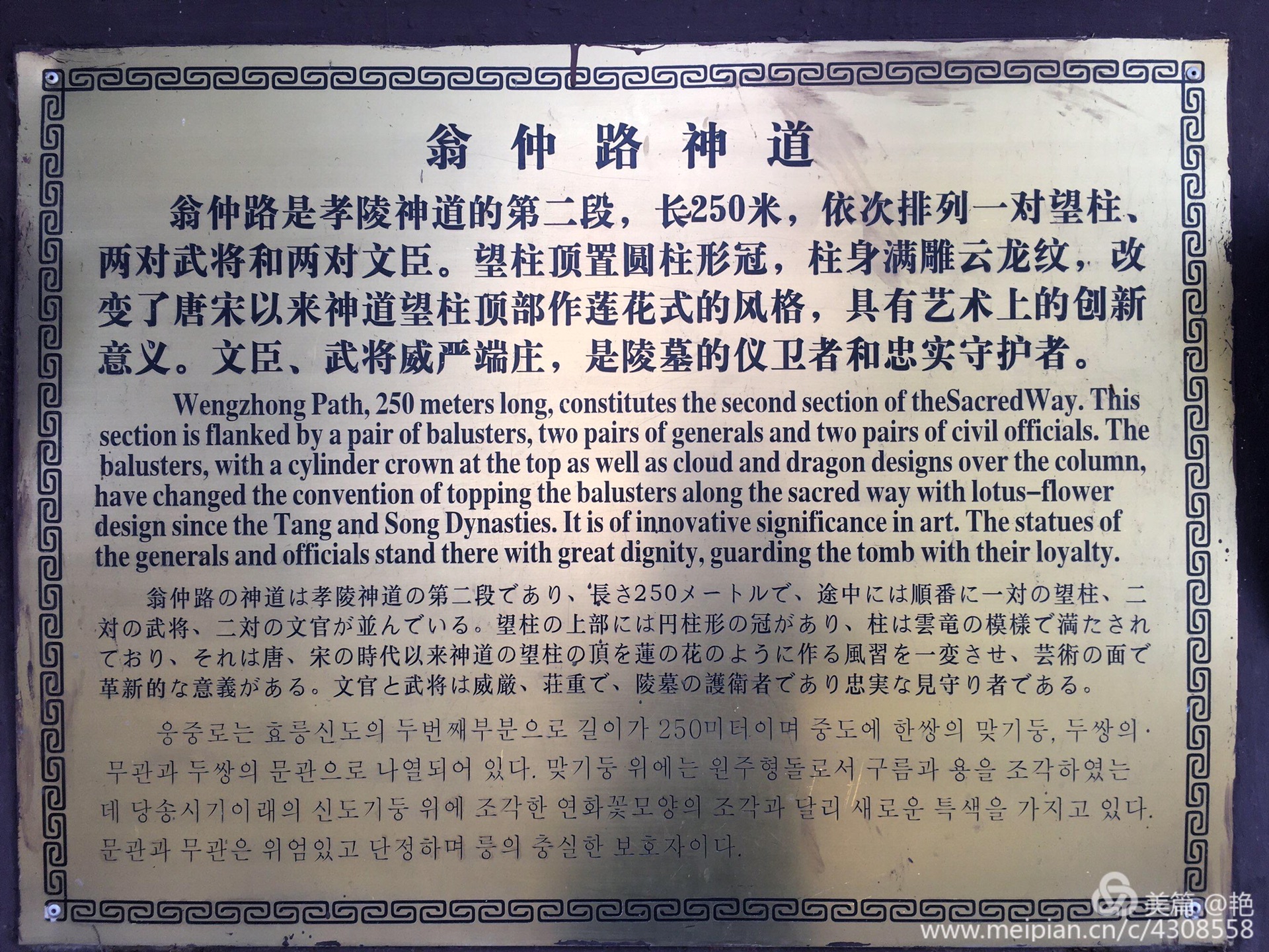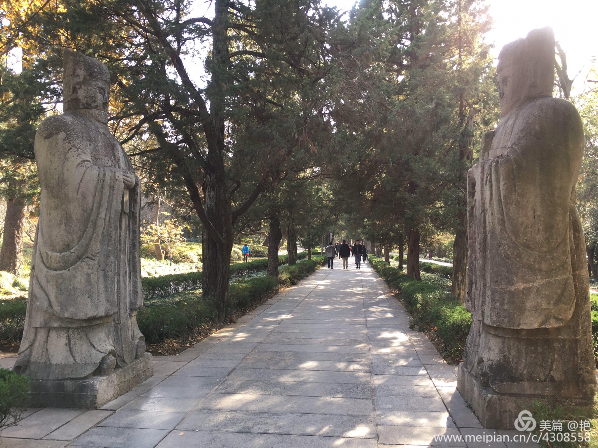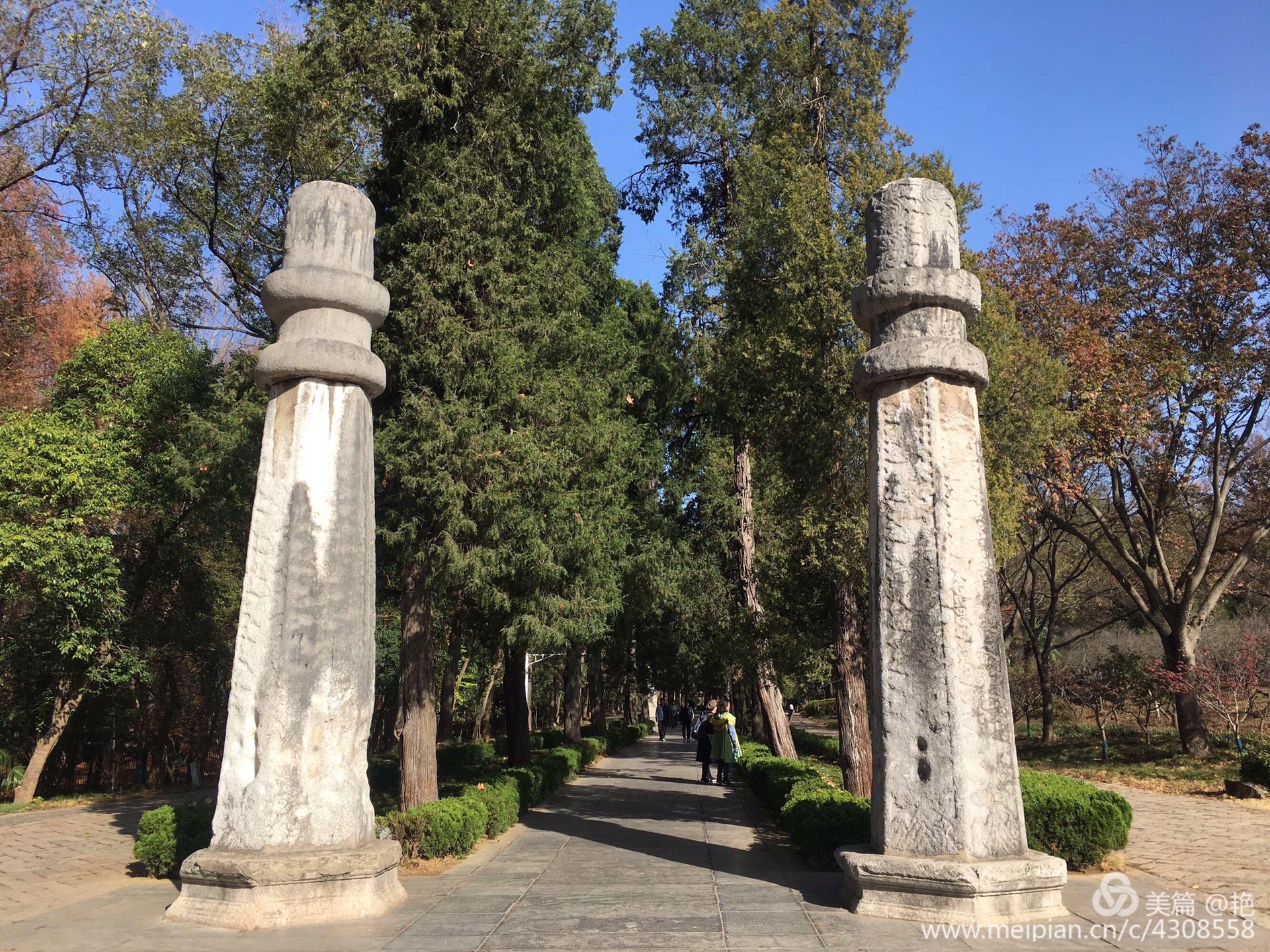 神道第二段:翁仲路神道。神道上的石望柱。
