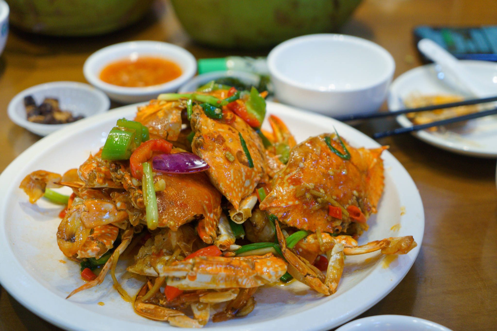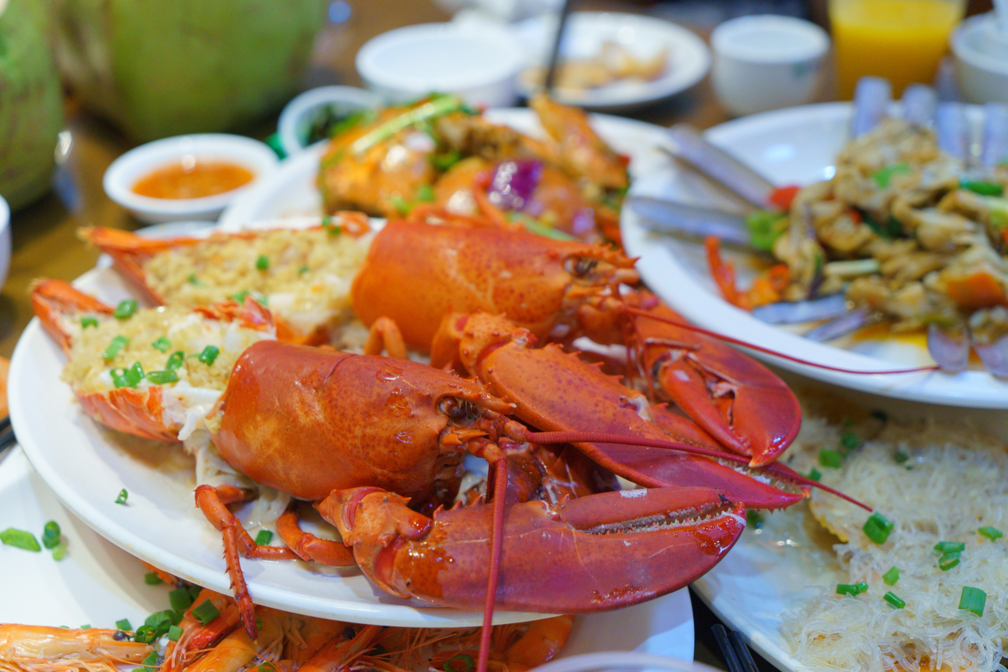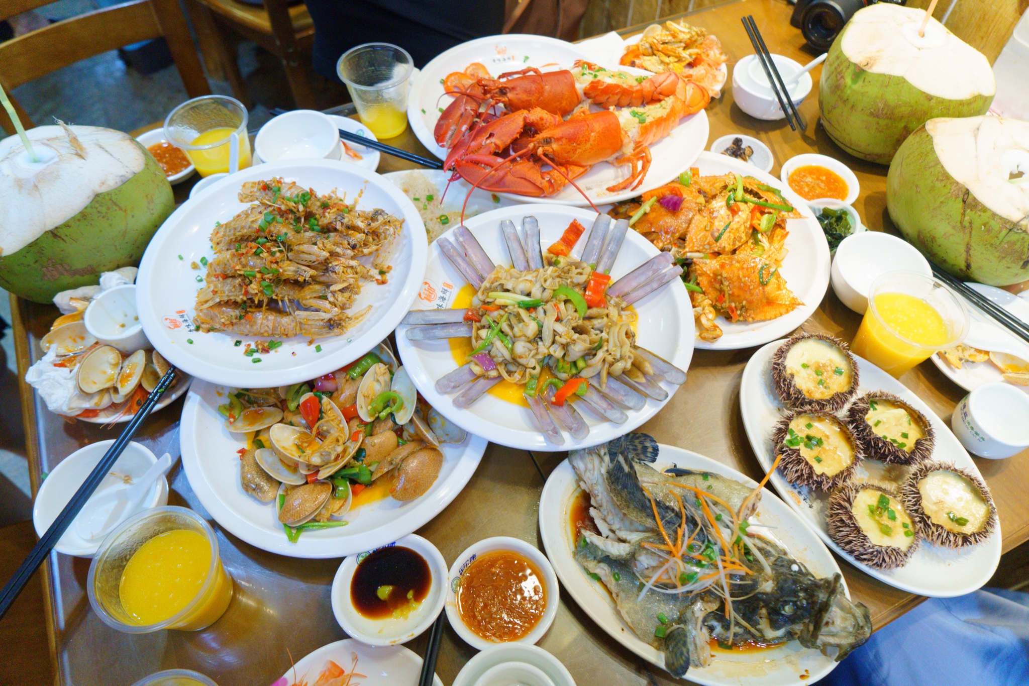 上菜很快,桌上陆续热闹起来。皮皮虾是我们一致认为要点的,肉质紧实弹牙,然后虾肉本身入口回甜,做成椒盐口味,吃起来味道丰富有层次。然后芒果螺在内陆不太能吃到,店员知道我们是成都来的,推荐做了辣炒,香辣入味,一口一个,有点停不下来。蟹一定要点,平常自己买个头都偏小,这里的蟹整个肥美很多,看得见的蟹肉蟹黄饱满,香辣口是四川人的福音,不会太辣更偏香,配合蟹的鲜,很赞。喜欢吃虾的,个头十足的波士顿龙虾,一定不要错过,一大口下去才知道什么叫满足!还有辣炒蛏子王,炒的很入味,脱壳后全是肉,一口接一口,吃起来很爽快!