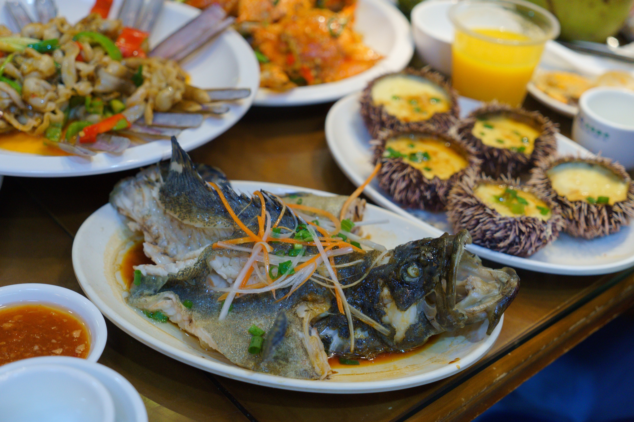 如果口味偏清淡,清蒸石斑鱼和海胆蒸蛋可以点一两分来调剂一下,保留海鲜的原汁原香,鱼肉细腻,有海胆提味儿,蒸蛋也更加鲜香可口了~