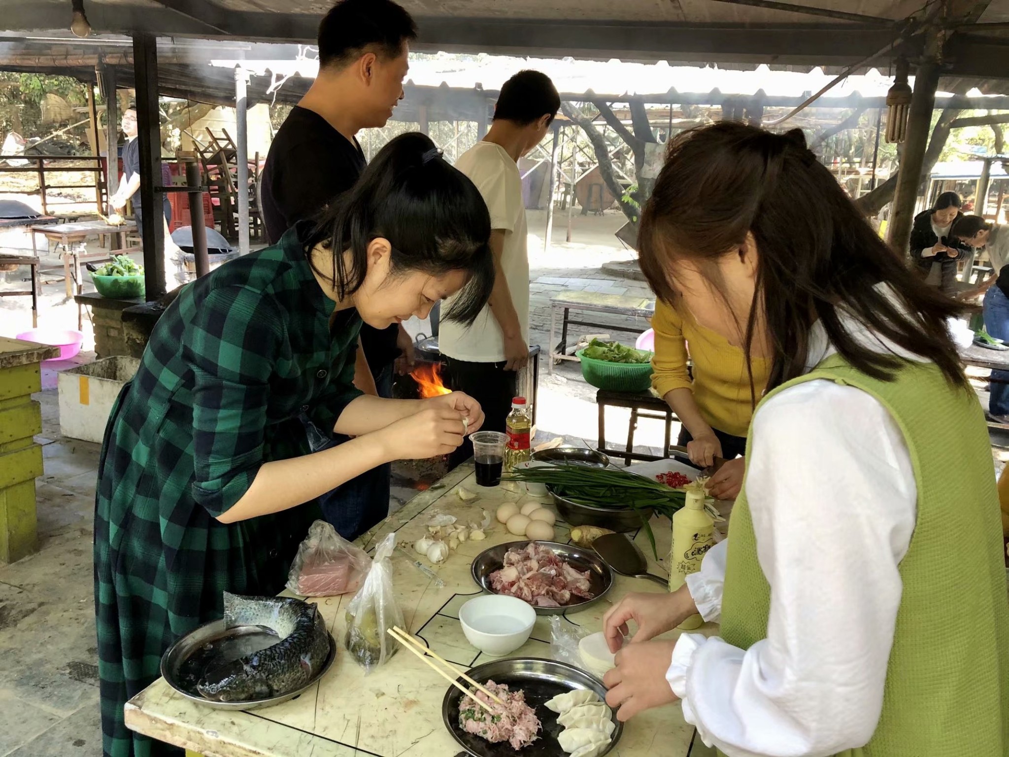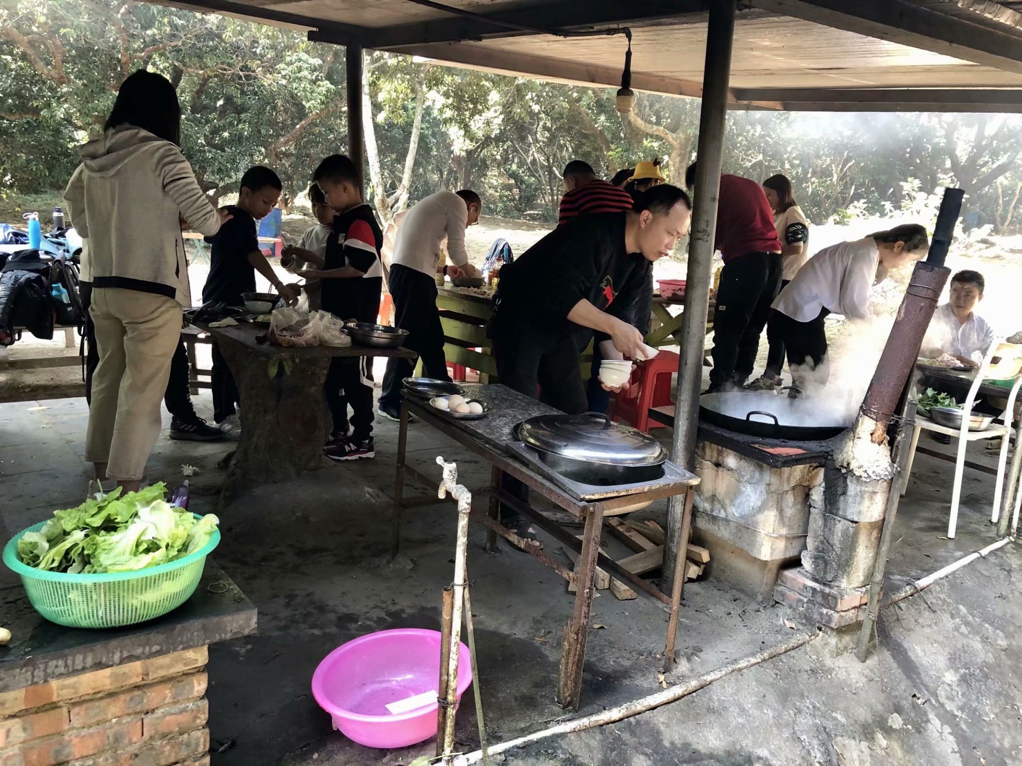 激烈的CS野战过后,领取野炊食材和工具,开始制作丰盛的午餐。