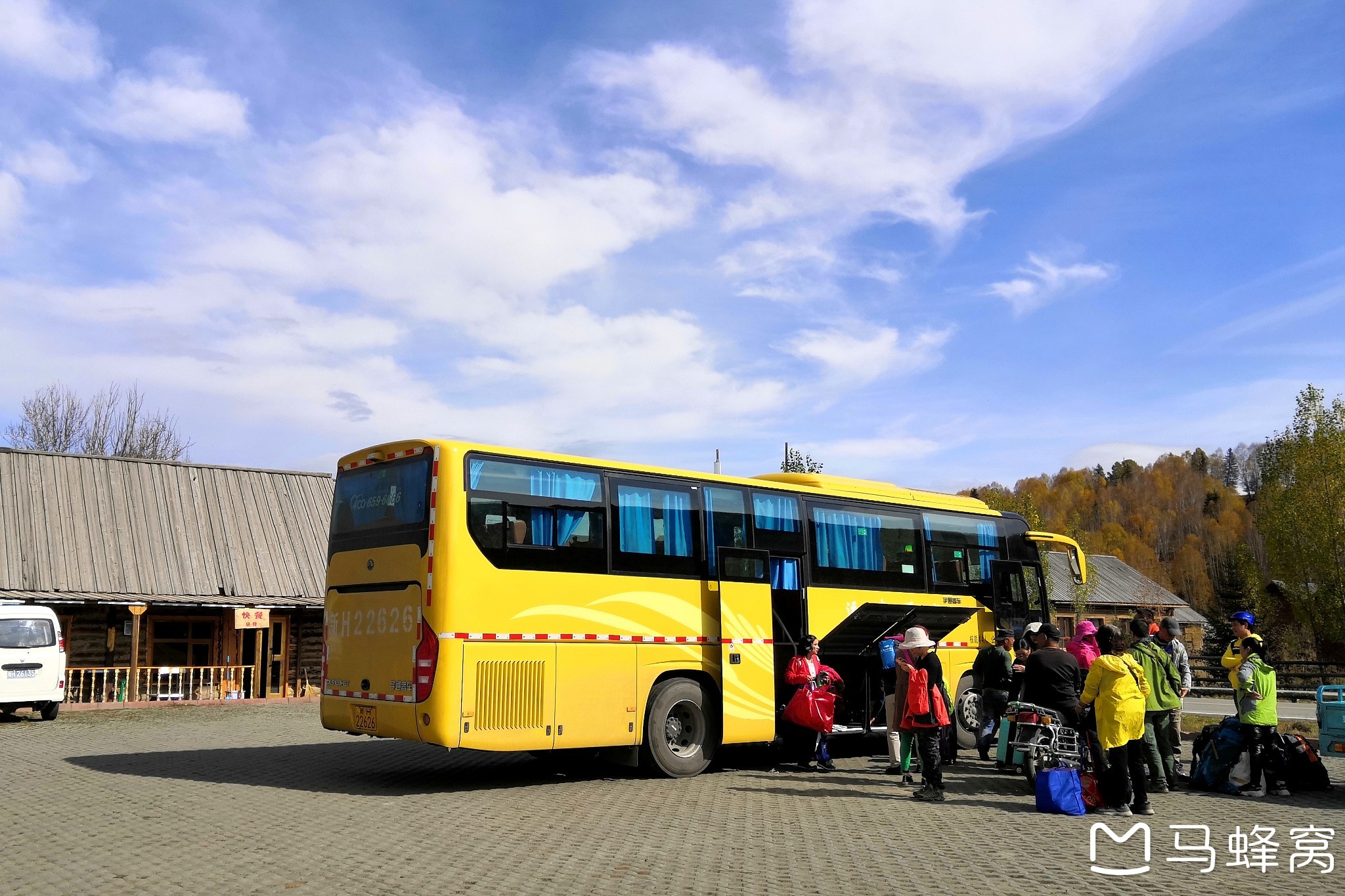 禾木换乘中心有环线公交到老村,站点间随意上下,但我没有座,而是自己慢慢走下去,反正也不远。