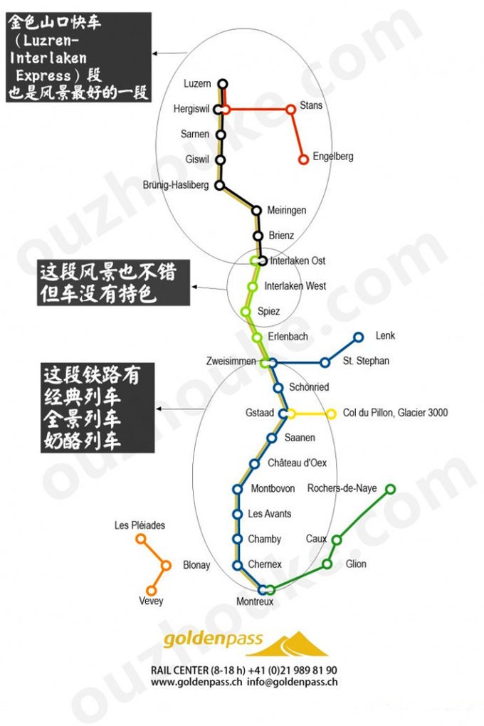黄金快车 LUZERN-INTERLAKEN EXPRESS (每小时一班快车)。