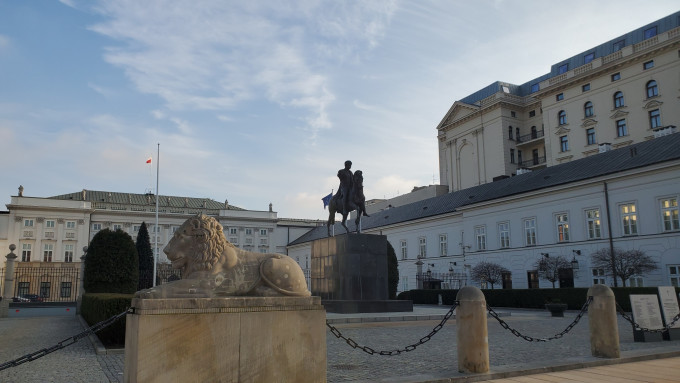 接下来步行到华沙老城,途径华沙大学以及总统府,在老城门口有个城堡广场观景台,门票6元,只收现金。上去之后风很大,风景一般,可以不用上去。