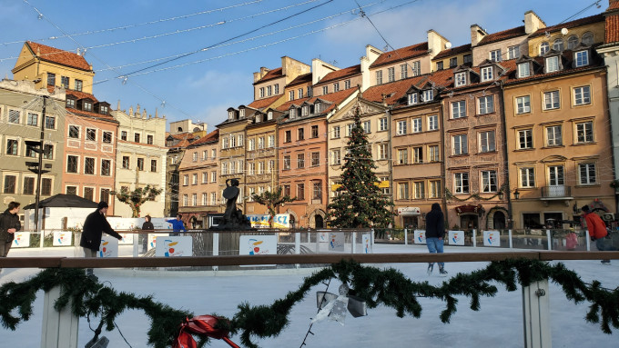 华沙老城并不大进去以后是几个教堂,在门口有写开放时间 ,有兴趣可以自己开门进去看看。再往里走就会来到老城广场,冬天小美人鱼喷泉被改成了滑冰场,感觉乱糟糟的。老城到处都是卖纪念品的小店或者卖琥珀的店。