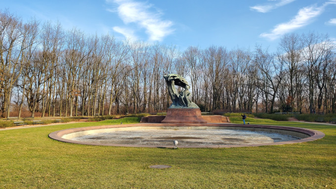 午餐之后乘坐公交车前往肖邦公园又名瓦金基公园。公园门口就是一个肖邦塑像,淡季确实很淡基本上没看见有几个人。