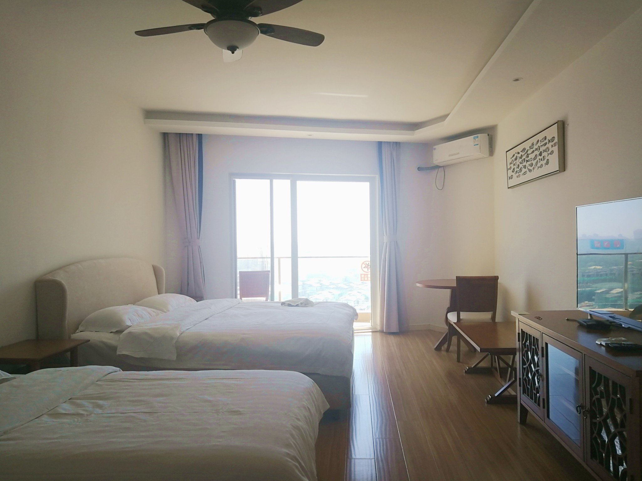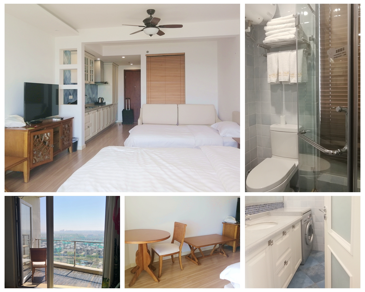我们预定了蔚蓝海岸里的酒店式公寓,名为“华贸蔚蓝海岸美居度假公寓酒店”,住下来感觉性价比很高,两百多的房价,空间不小、设施一应俱全、楼下就是食堂与餐厅、距离海边步行十五分钟可达,唯一遗憾的是海景房看不到什么海景,所以定一个非海景房间也足够。