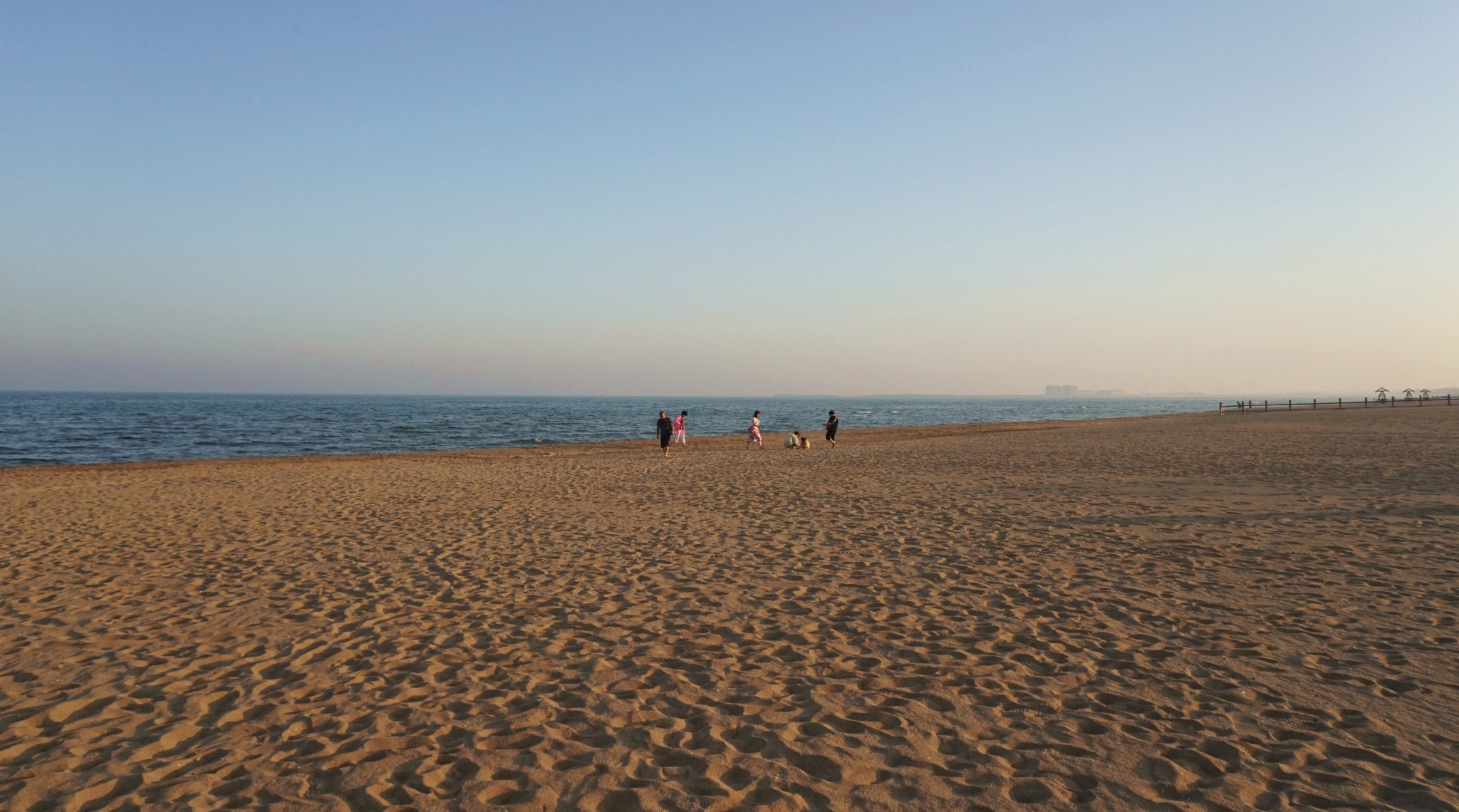 乐此不疲地踩踩沙子拍拍照,就消磨了快两个小时,此时夕阳西下,余晖洒在沙滩上,更添一份金色。