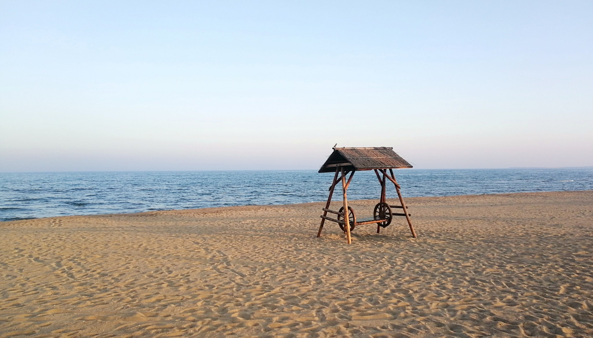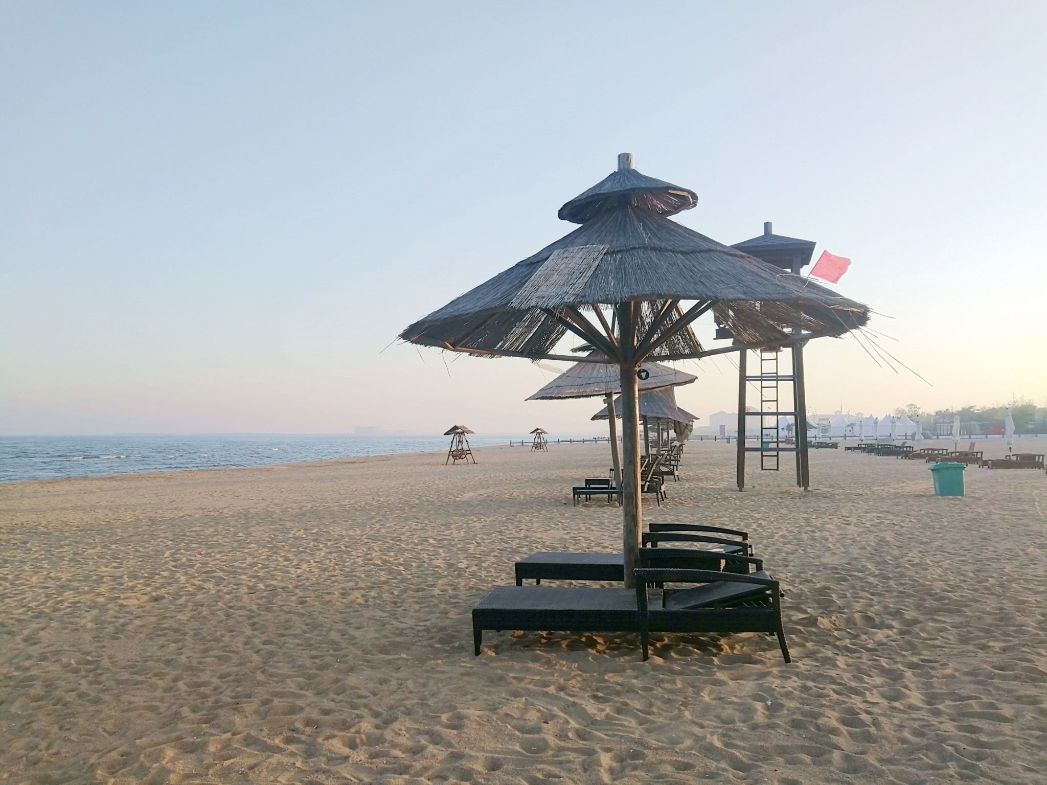 沙滩上间或摆着秋千与躺椅,可能是淡季的缘故,未有人在这里停留,若是再热一些的天气,躺在躺椅上翘着小脚、喝喝冰阔落吹吹风,岂不美哉。