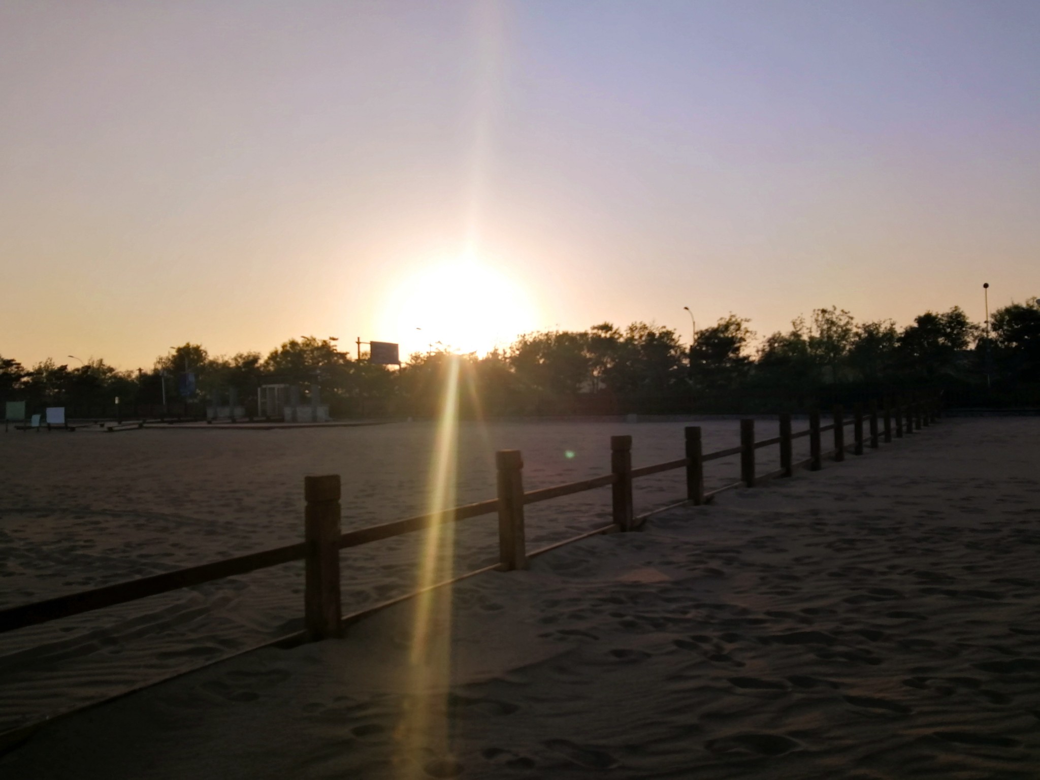 可惜太阳从沙滩那一面落下而非从海平面降下,否则定然更美上两分。