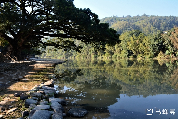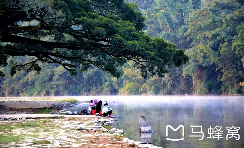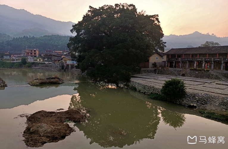 11月5日早上06:30时左右,晨曦中的云水谣古村,是那么的宁静安详。长教溪上漂浮着淡淡的白色晨雾;溪边古老榕树象一把绿色的大伞,枝叶茂盛的伸向水面;古榕树下洗沭衣服的农妇,构成了一幅自然天成般的美景!