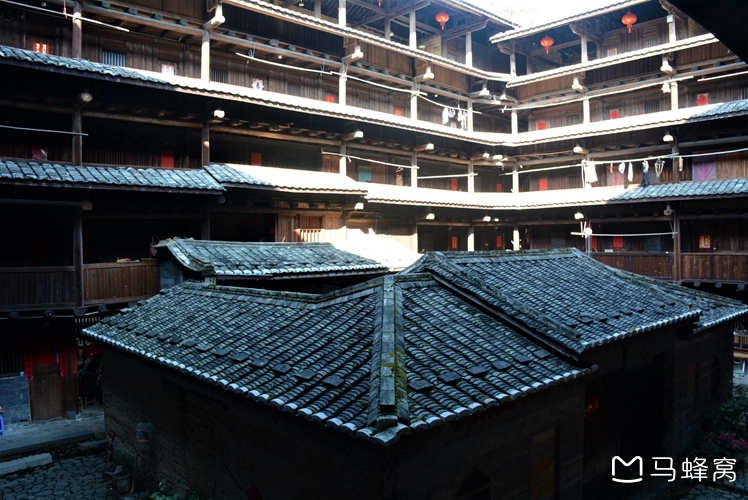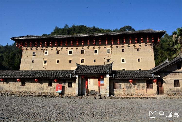 踏着已经600多年,用鹅卵石铺砌而成的古道,逆流而行,不一会就来到了和贵楼。和贵楼是一座方形土楼,建有5层楼,每层有28个房间,共有140个房间,是所有土楼中最高的土楼。并且还是一座建在沼泽地上的土楼。建于清雍正十年(1732年)间的和贵楼,已经问世快三百年,一直岿然不动,堪称奇迹。
