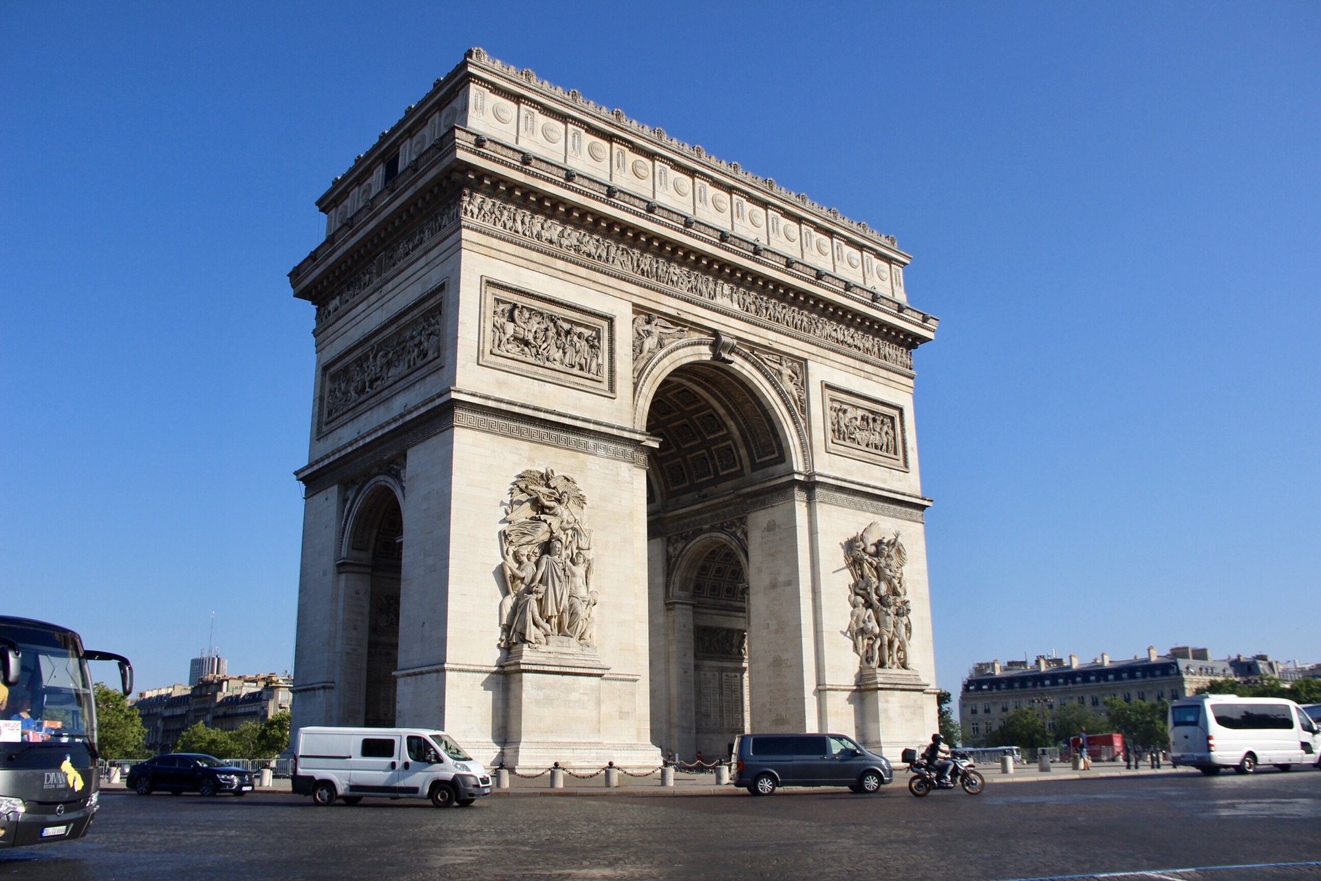 旅游大巴从机场直奔景点,又是一个无缝连接!第一站就来到了凯旋门!第一次见,宏伟壮丽!