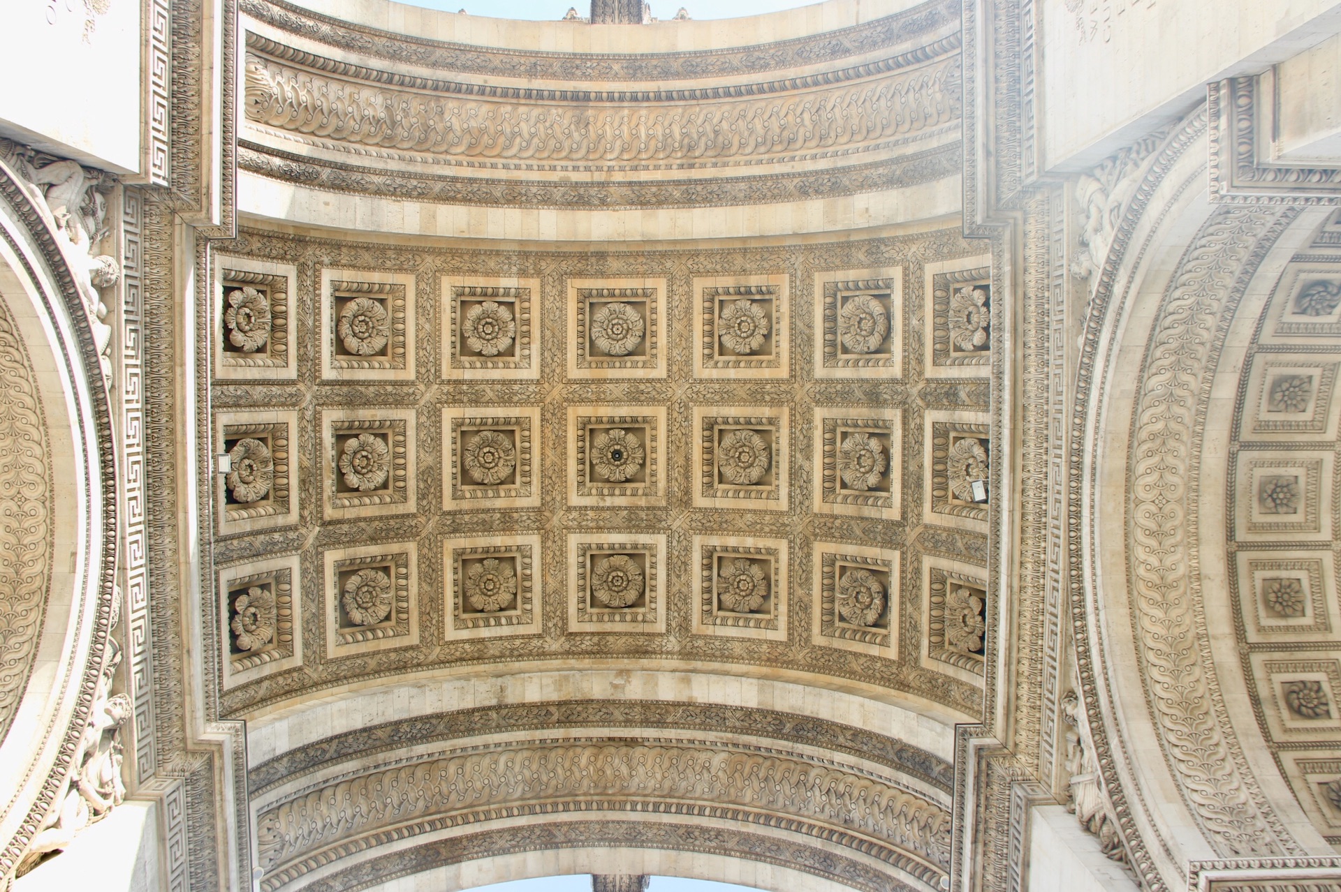 第一次近距离看凯旋门的雕刻与壁画,让我想到了埃及的各大神庙中的象形文字,与之相比这里的壁画多了些精美与匠气,少了些历史的厚重感。