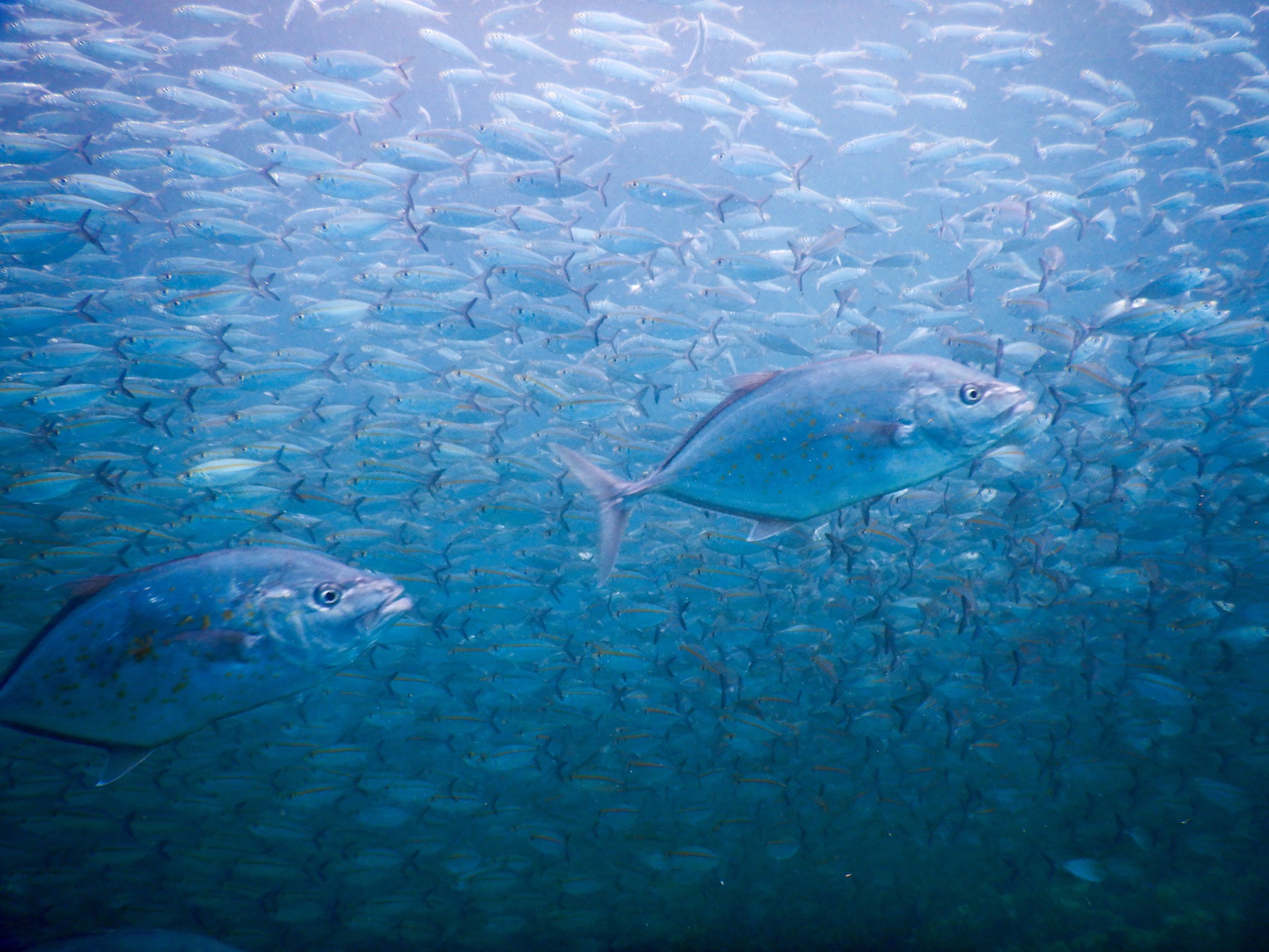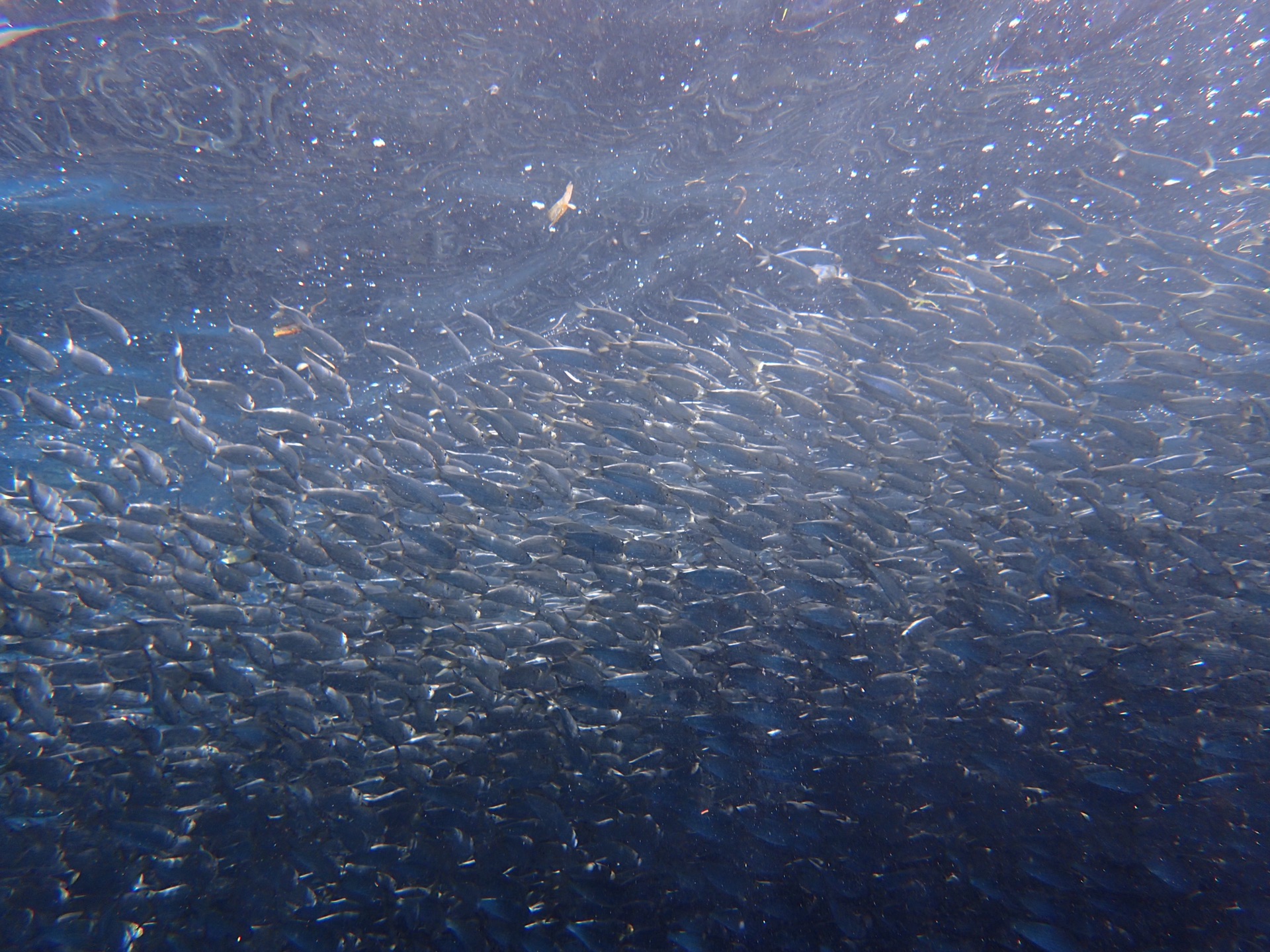 这是我第一次看到这么多的鱼,感觉自己完全被鱼包围住了,而且沙丁鱼游的速度超级快,感觉我的Go Pro已经跟不上它们的速度了。