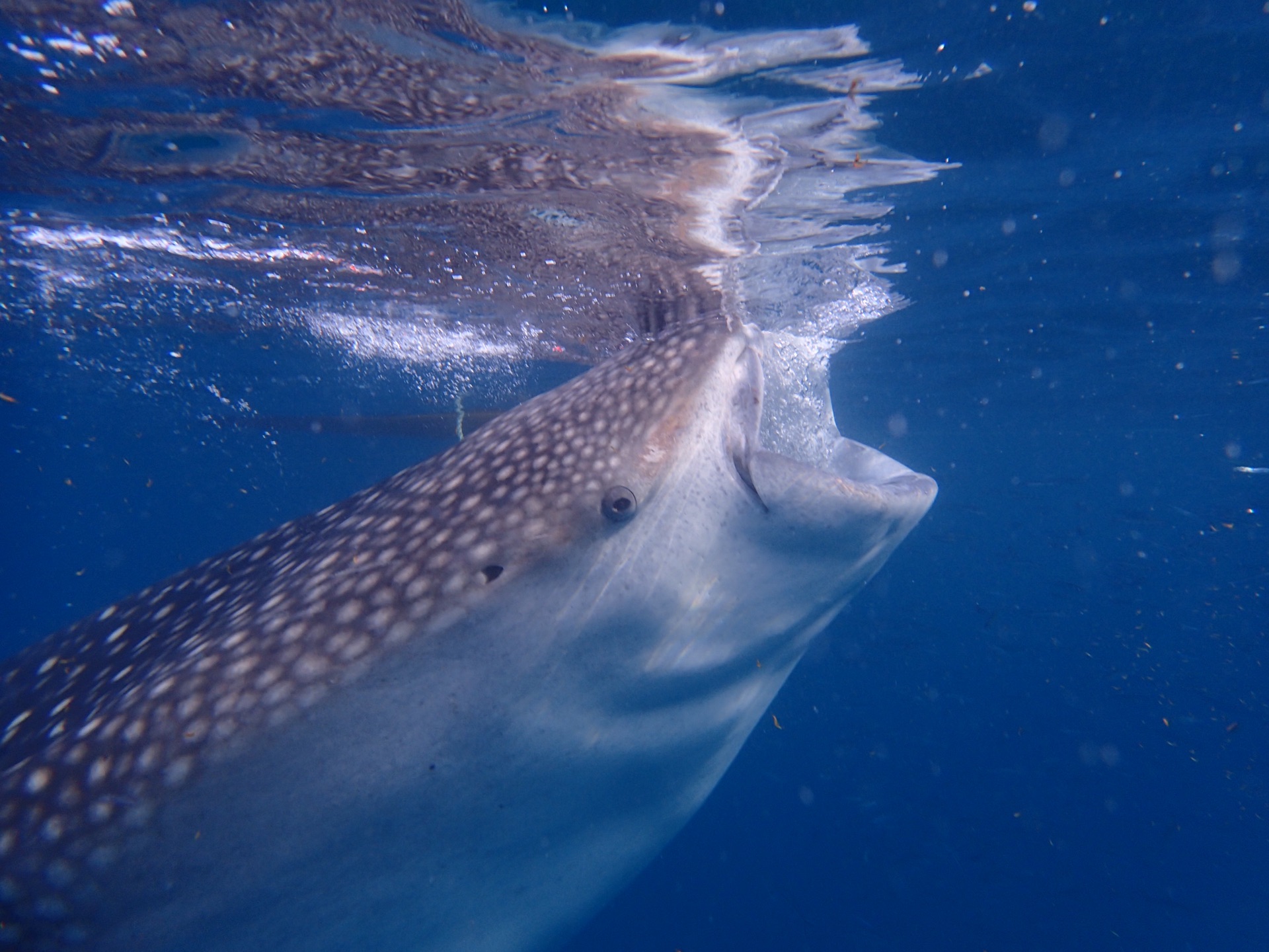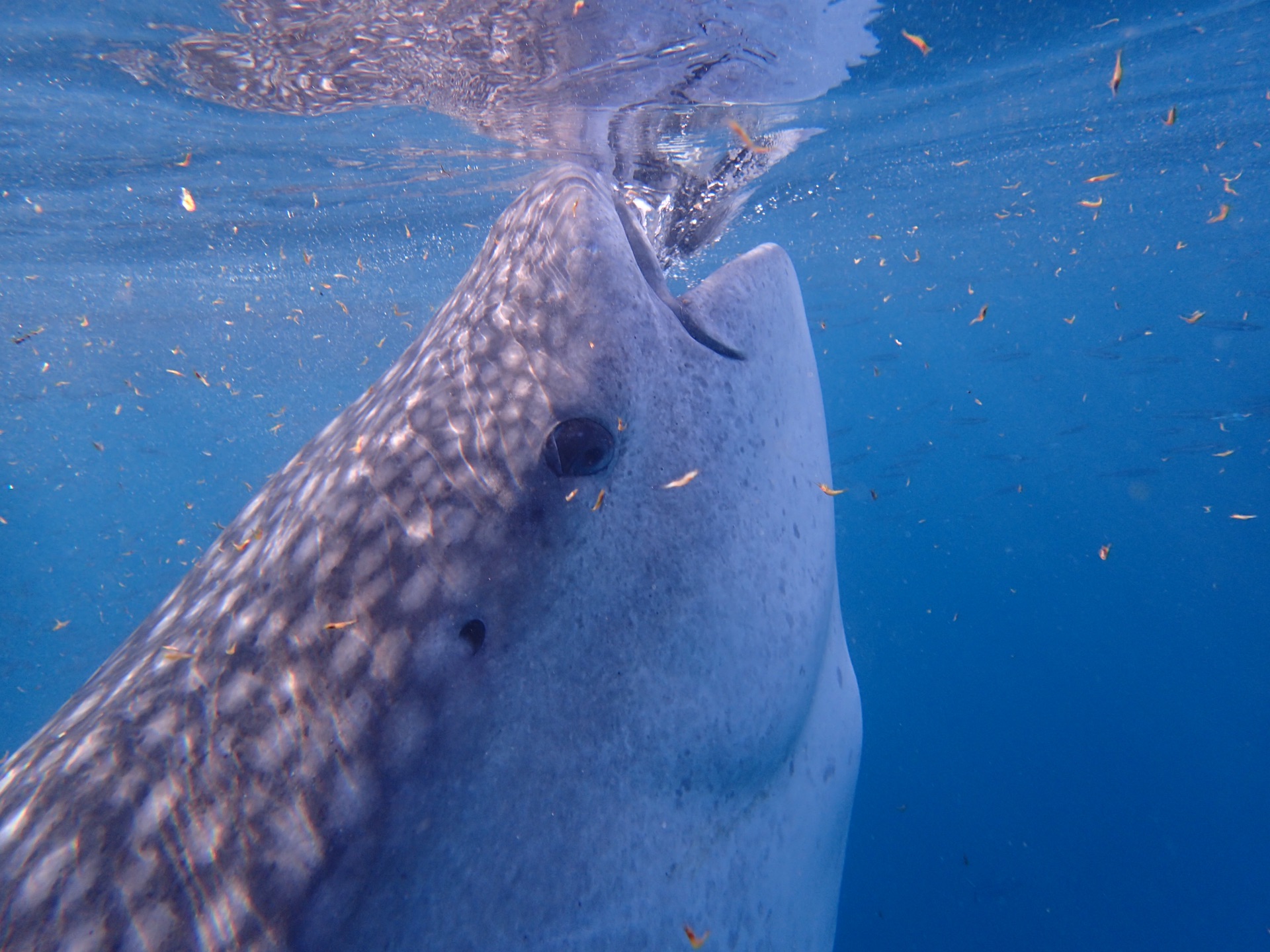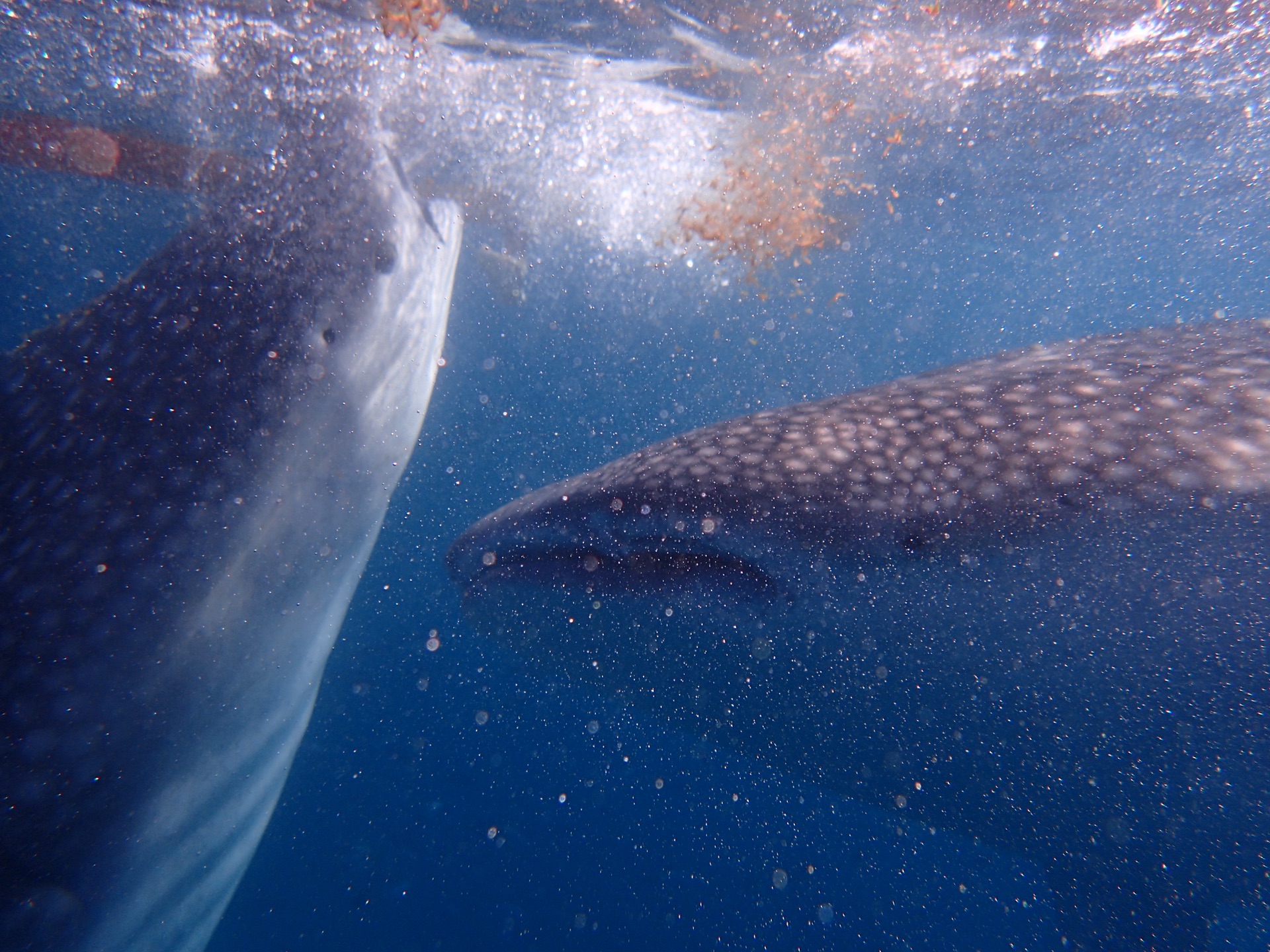 去看鲸鲨又是需要早起的一天,同样是5:30起床,6:30出发,看鲸鲨的人很多,需要先坐在外面排队,等到叫到我们团队的号之后,我们就可以坐一个小船,到海上去看鲸鲨,不过坐船只需要大约5分钟左右的时间,到鲸鲨喂食的地方,就可以直接跳下海浮潜。