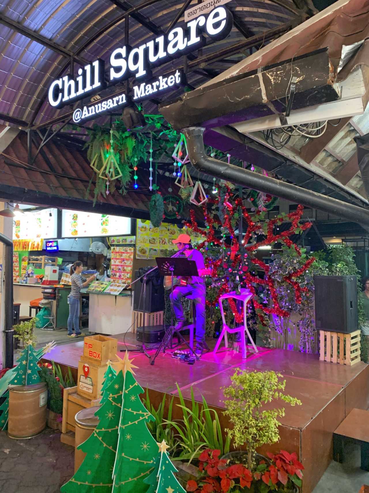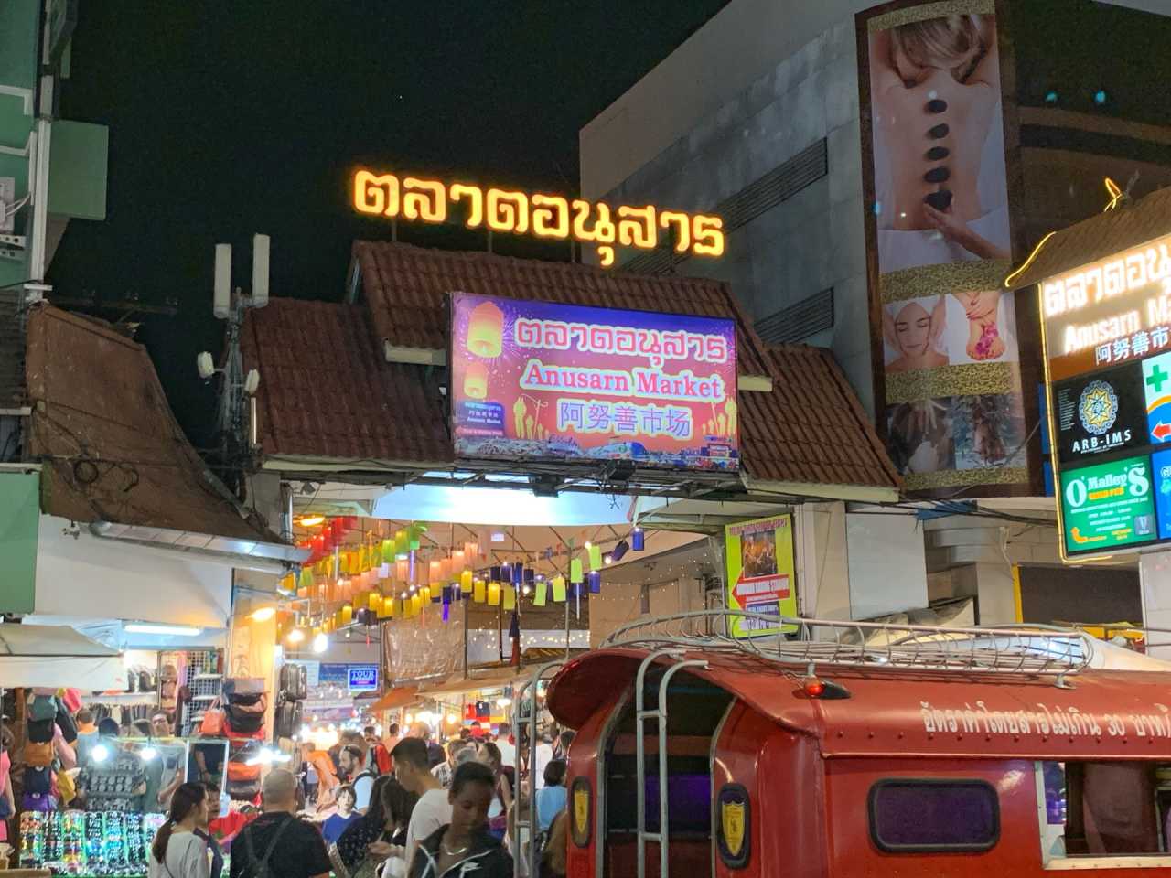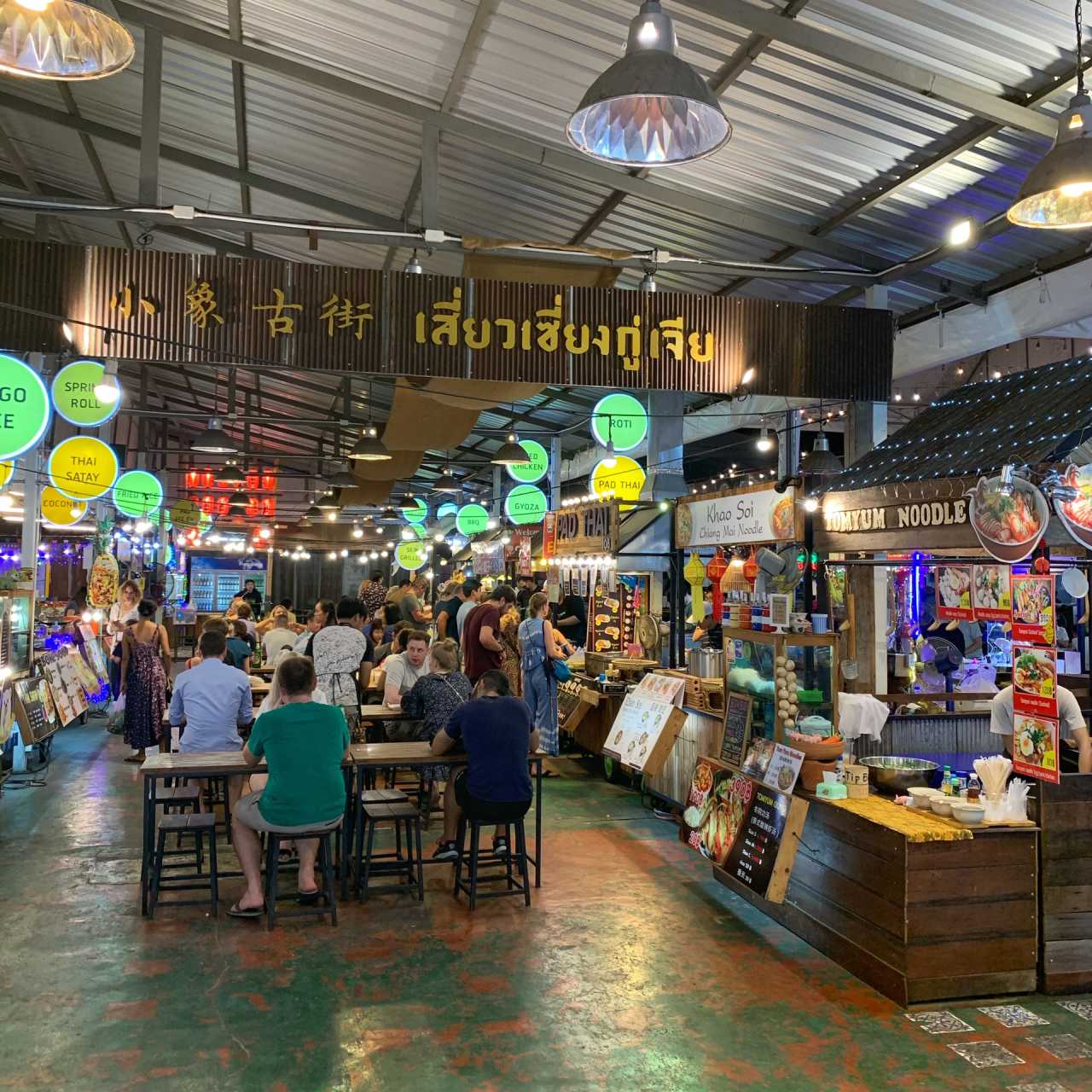 这个市场叫阿努善市场,进门处是一排工艺品商铺,井然有序,内容比外面夜市稍微丰富一些,再往里走,还有一个小美食广场--Chill Square,木瓜沙拉,烤肉,炒棵条散发阵阵香气。