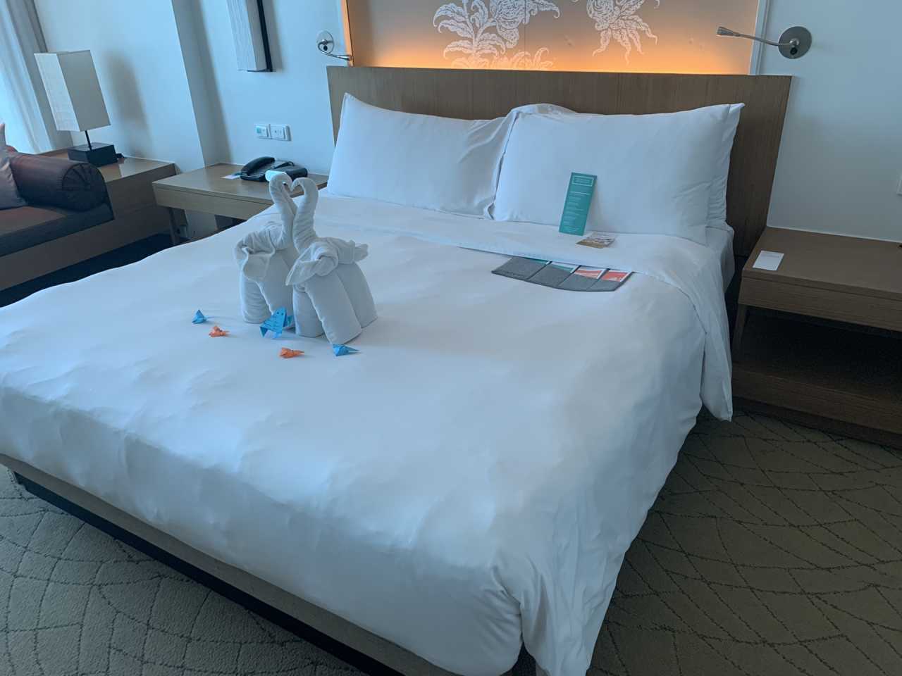 进入酒店,有种淡雅的香味,门童会微笑着主动接过行李,第一印象满分。因为提前告知了酒店想申请山景房,所以亲切的前台小姐姐帮我们升级了房型,特别感谢,第二印象满分!进入到酒店,立马就被床上的毛巾小象萌到了,酒店还贴心的准备了小点心,第三印象满分哈哈!