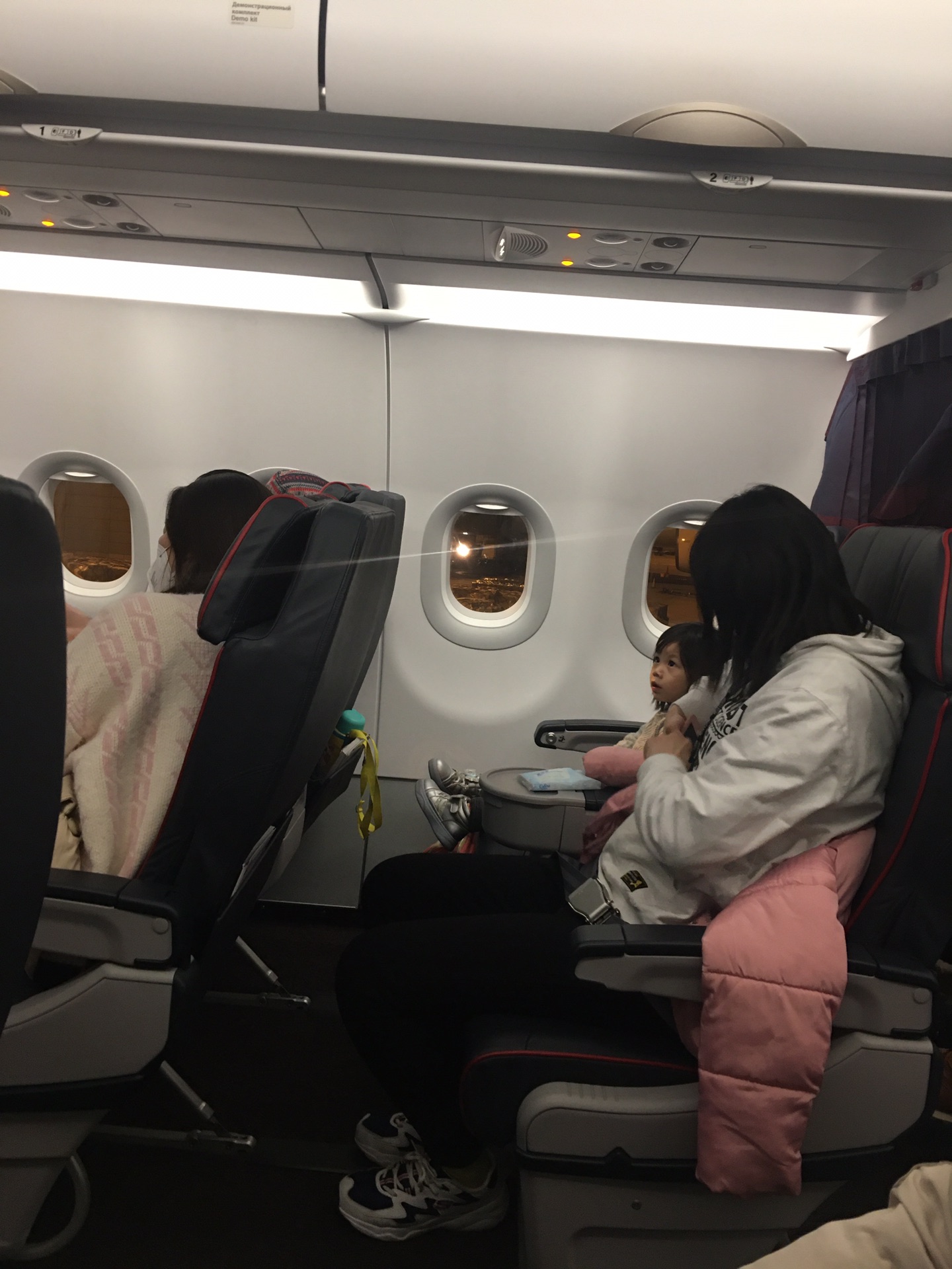 好困哎,被媳妇吐槽了无数遍了,说为什么要订这么早的飞机,凌晨四点,我们三口就起床赶飞机了,因为换了一个新地方,我一夜没有睡着,媳妇和孩子也是一样,毕竟孩子还是小,特别怕生病,所以我们就匆匆去赶飞机。依然路过日上,依然买点东西,发现竟然给我们安排的商务舱,就是孩子有点闹人,毕竟一夜没有休息好