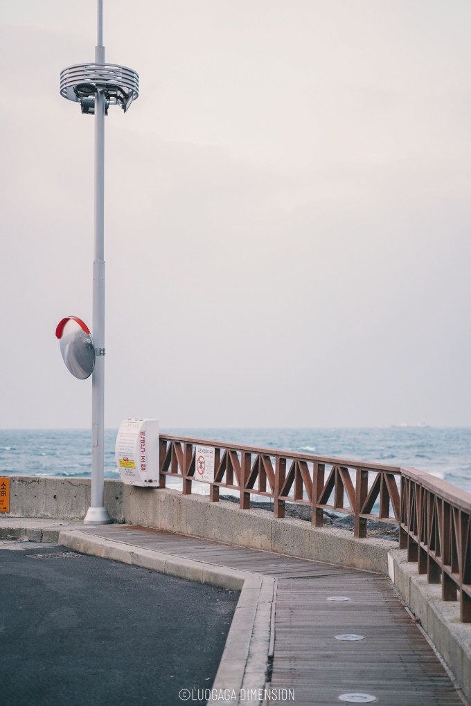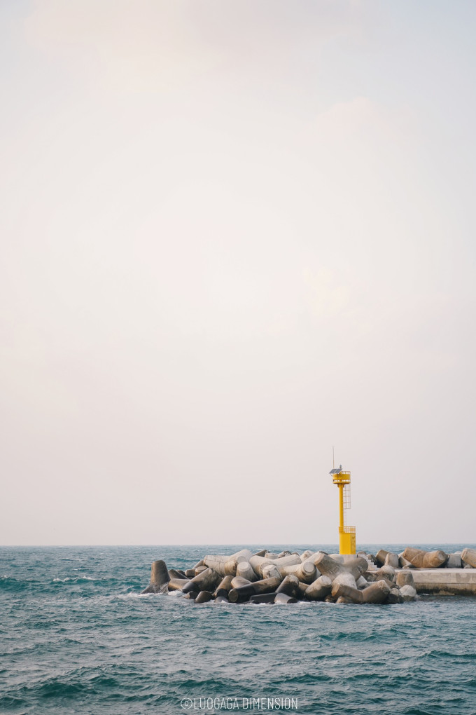 日出峰的附近有一处沿海高地,当地方言「涉地可支」,从沿着海岸的围栏向上走,有“蓝色大海的传说”拍摄地-一家特别有设计感的餐厅,再往上走,山顶的灯塔就在不远处。