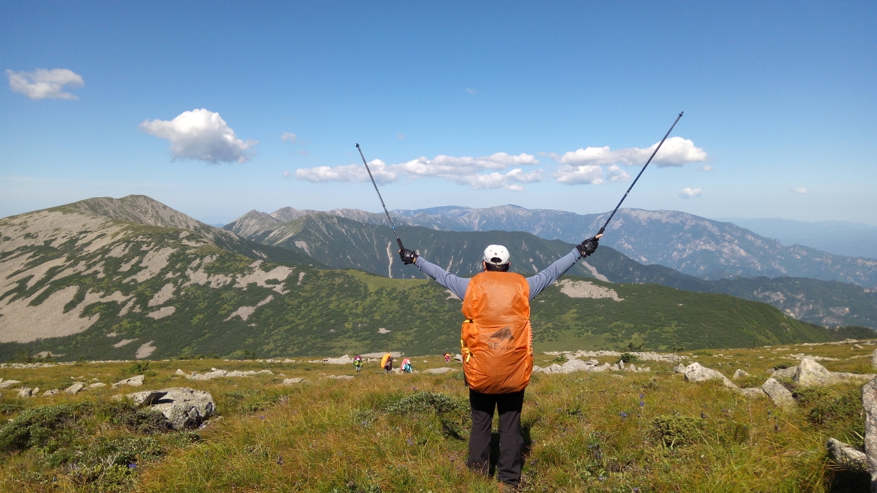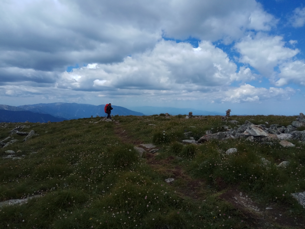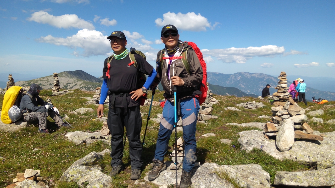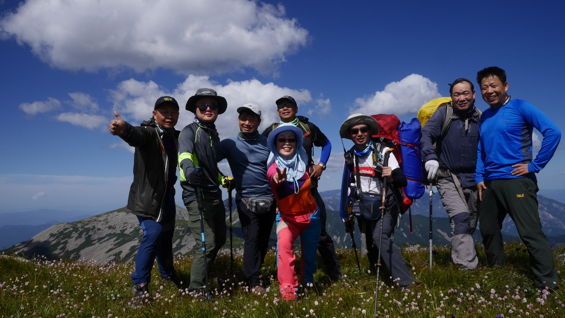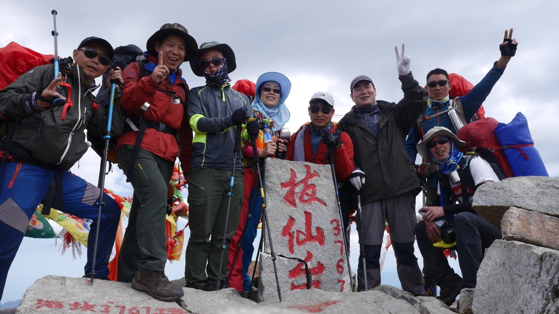 去往拔仙台的路其实不高了,但因为有些感冒,今天也是强弩之末了,所以每一步都是如此艰难,跟在画姐和胜利后面一步步挪动着,当看见二爷海三爷海的时候,还是被它们惊艳了,也忍不住掏出手机照起照片。历经磨难终于登顶拔仙台,小伙伴们已经休息好久了。一起来个合照,四面青山尽在眼底,历经五天终于登顶,有一种喜洋洋的感觉。