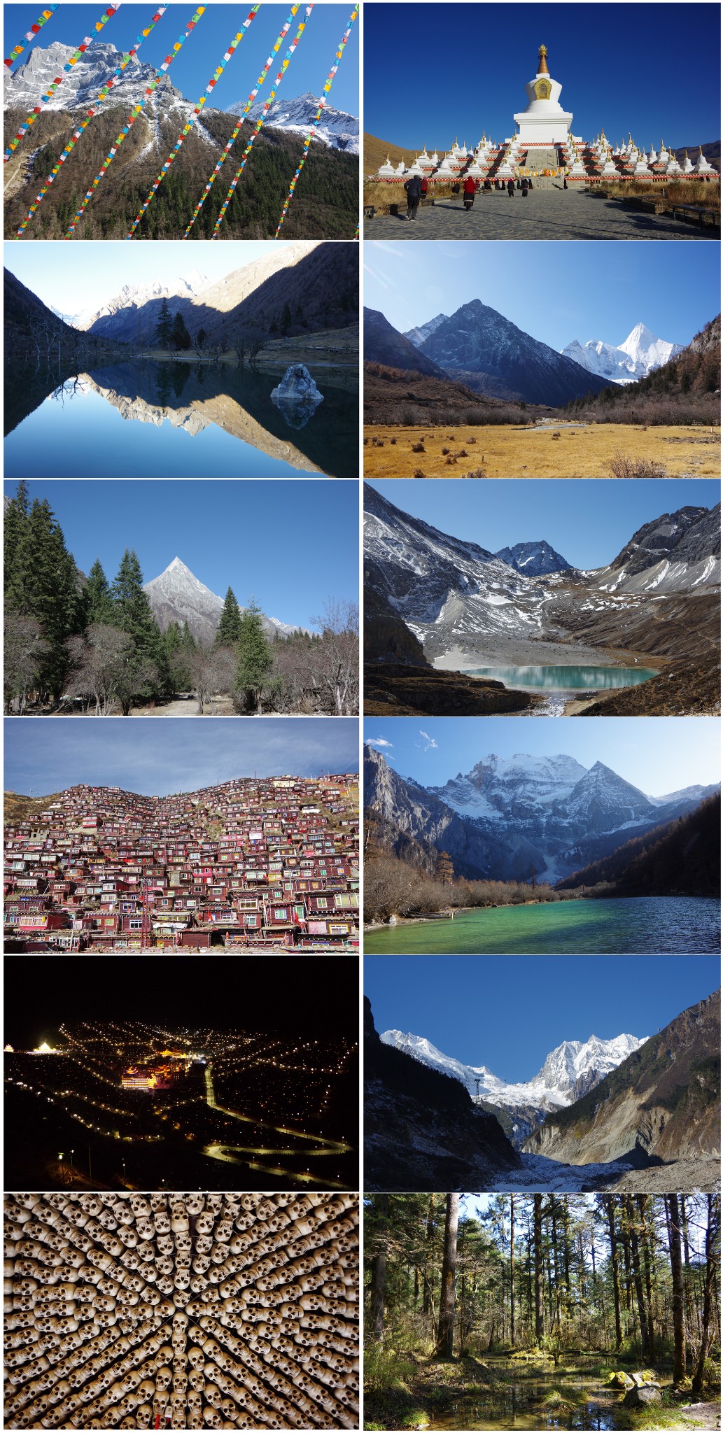 包括了:四姑娘山双桥沟和长坪沟、色达喇荣五明佛学院和天葬台、稻城、亚丁、海螺沟、泸定