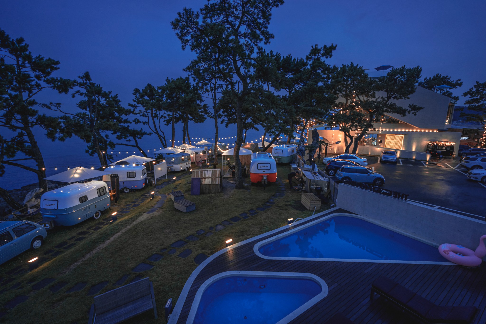 在釜山短暂停留的12个小时,我们依旧看到了最美房车营地和悬崖咖啡厅。台风前的它们显得那么平静从容,老板说:“其实你们不必退房,这里已经经历过7,8次考验。”