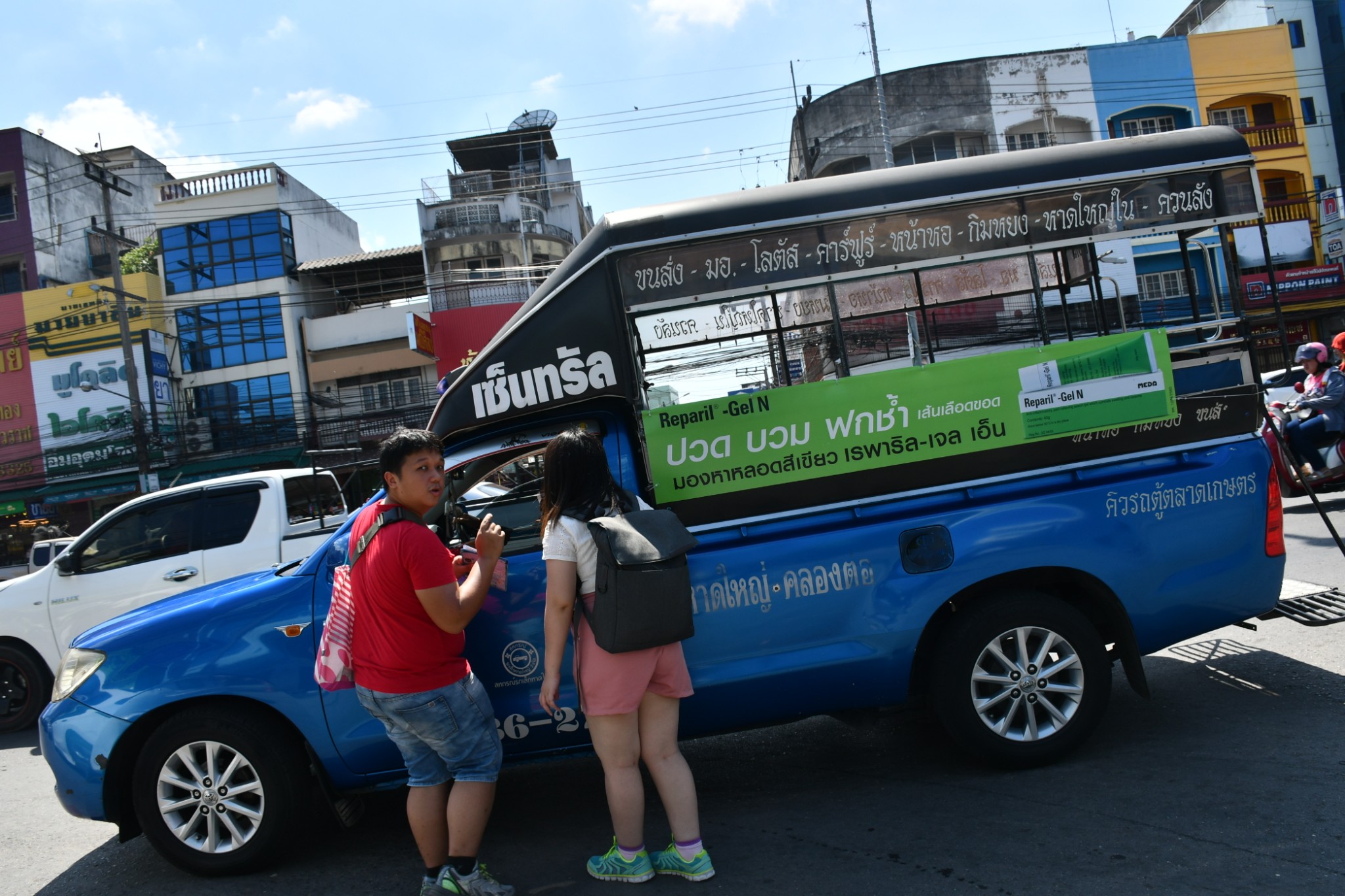 合艾居民中泰籍华人占多数,主要是客家人、潮州人。这里民风淳朴,民众们对中国游客非常友善,所幸我们所遇上的司机都是实在的本地人。我们一行6人,一出关口,我订了下图这辆车的司机,从关口回到民宿要一个半小时左右多,160马币的车费我们认为也挺划算。接下来的日子,我们在市区出入,大家一致认为打笃笃车一起出入会比较方便,笃笃车的价钱比较透明,2公里以内的车费是20泰株/人。偶尔会碰到有的司机听不懂英文,只好用手来比划,肢体语言也是一种沟通的方式嘛。但也会遇上惊喜,有的司机不懂英文,但略懂几句中文,他们会用生硬的华语告诉你“20一个人”。