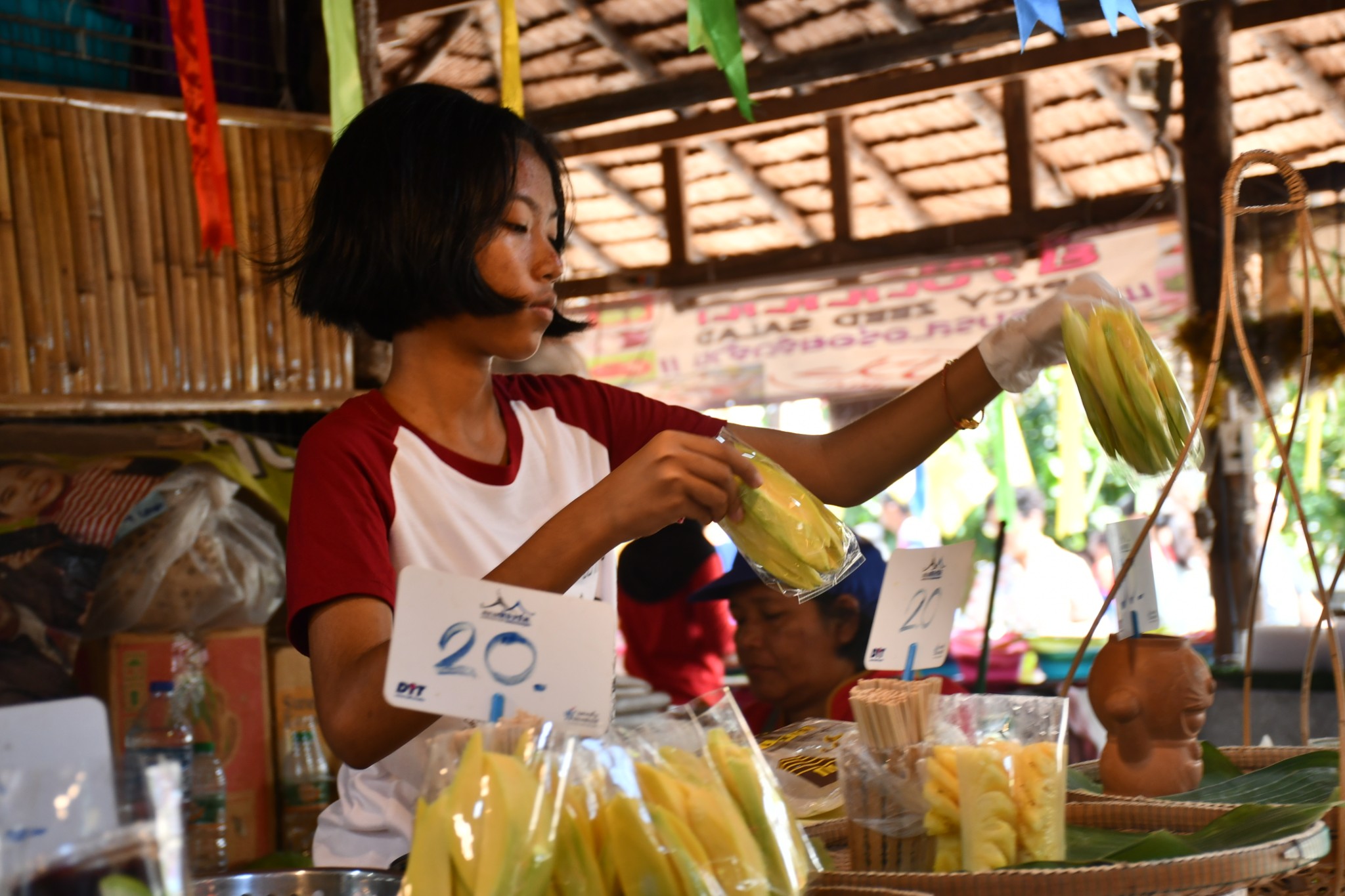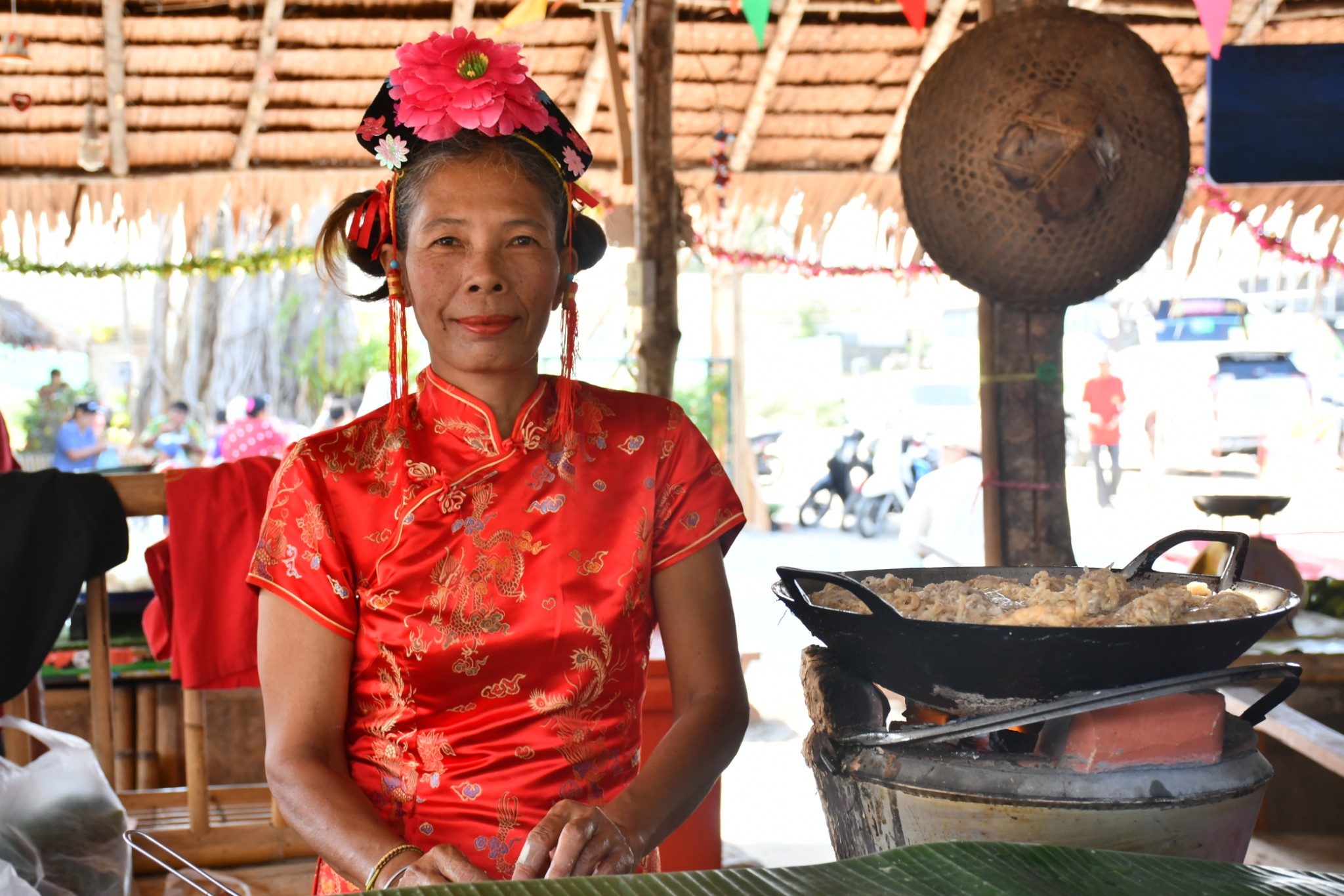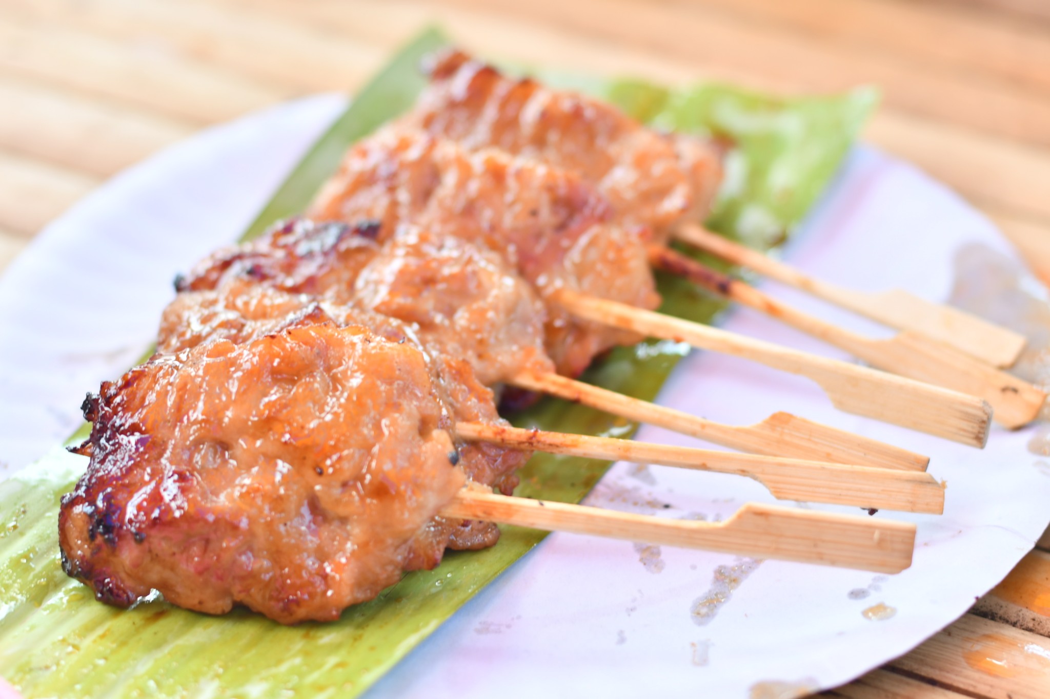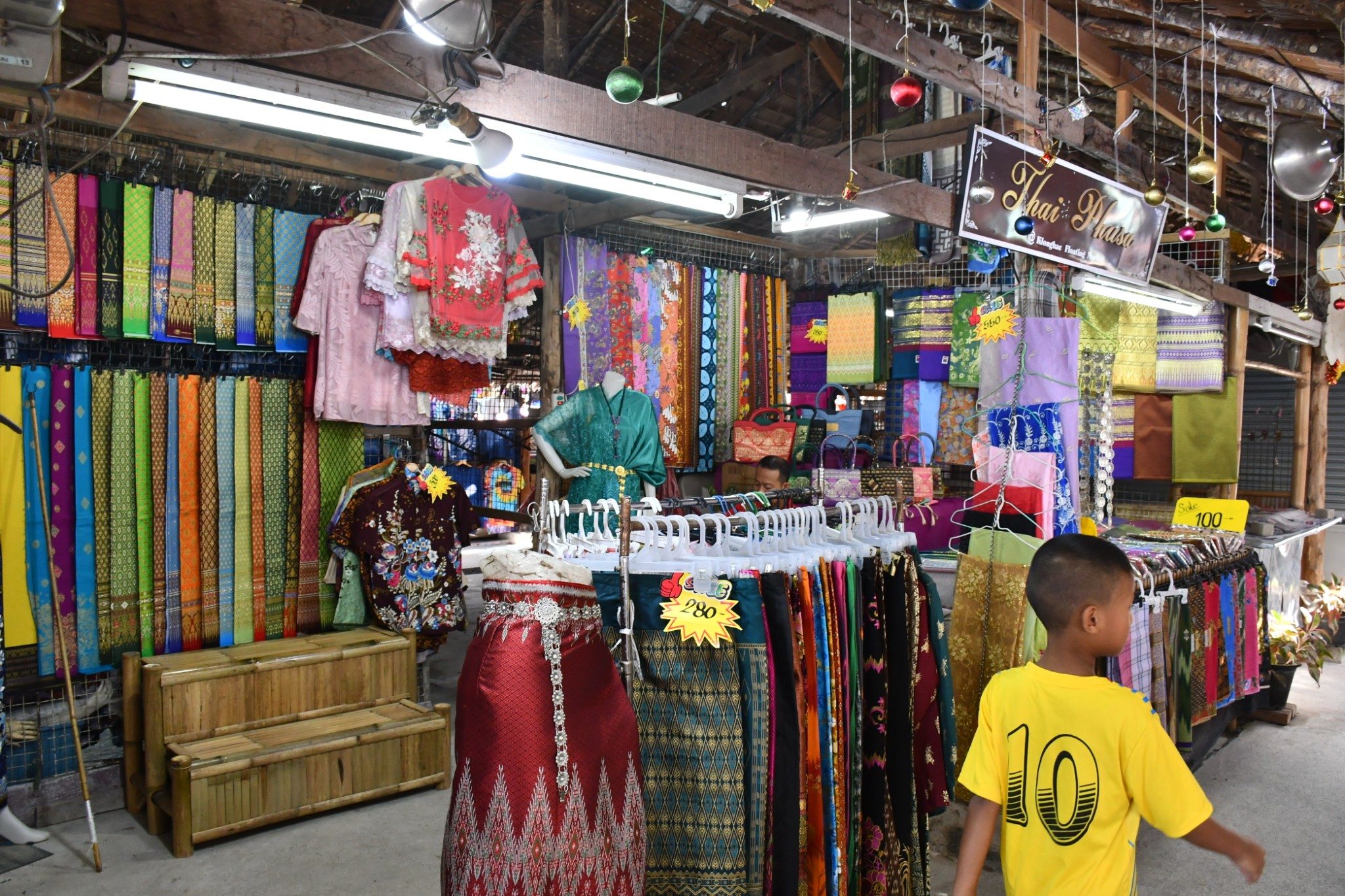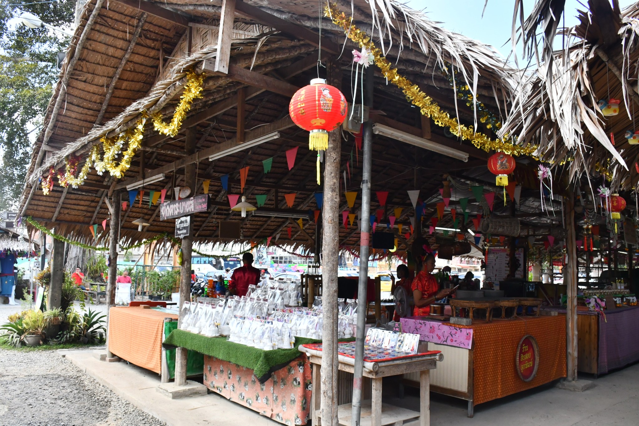 泰国合艾的水上市场只在每逢星期五、六、日营业。我们到达的时候是下午4点多,烈日当空,艳阳炙烤,当时觉得这个时段来这里实在是有点失策。一艘艘扁窄的长方型木舟,密密麻麻地停在河在两岸,令我们感到奇特的是水上市场交易时,坐在船中央的小贩,会通过一把前端装有小藤篮子的长竹杆,将食物置放在篮子内移交给顾客,客户付款时也把现款放在篮子内让小贩收取。在河畔的岸上,有个亚答盖顶搭成的市场,粗略一数有上百个摊档,我点了芒果饭、蜜汁猪扒、炸虾等小食与同伴大块朵颐。这里空间不大,人潮拥挤但井然有序。此刻幸福感满满,就是超级无敌的热,不过我们长年生活在吉隆坡,无惧酷热。