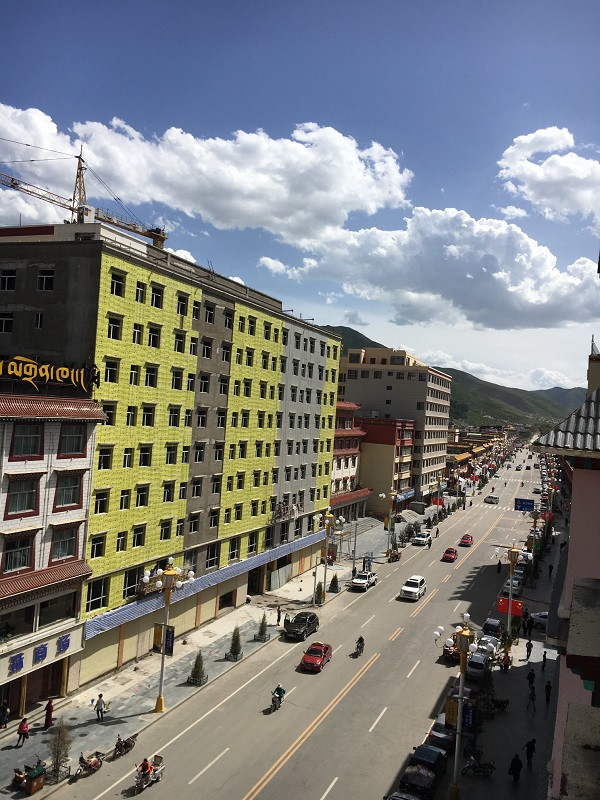 夏河县城只有这样一条主要街道,已是高原,海拔3000,街道干净清净: