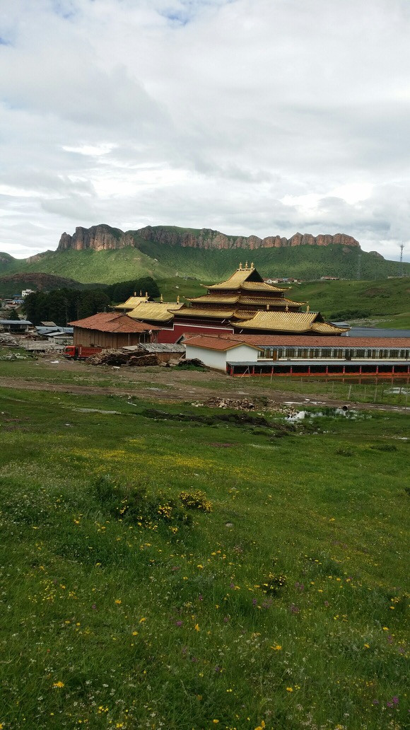 甘肃侧色止寺面向高峙的红石岩壁,四川侧格尔底寺背靠高峻挺拔的石峰,白龙江的源头在嶙峋嵯峨的石峰下孕育。郎木寺给俺最深的印象来自四川侧格尔底寺后的草坪,藏人或喇嘛们在鲜花怒放的草坪上,背着高峻挺拔石峰,面向高峙红石岩壁,聆听着白龙江源头流淌下来的溪流和水车转经声,和谐完美。