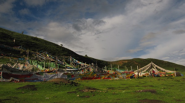 郎木寺镇甘肃侧色止寺的天葬台,经幡和天色十分搭配,有一种圣洁和壮烈的感觉(ST拍摄):
