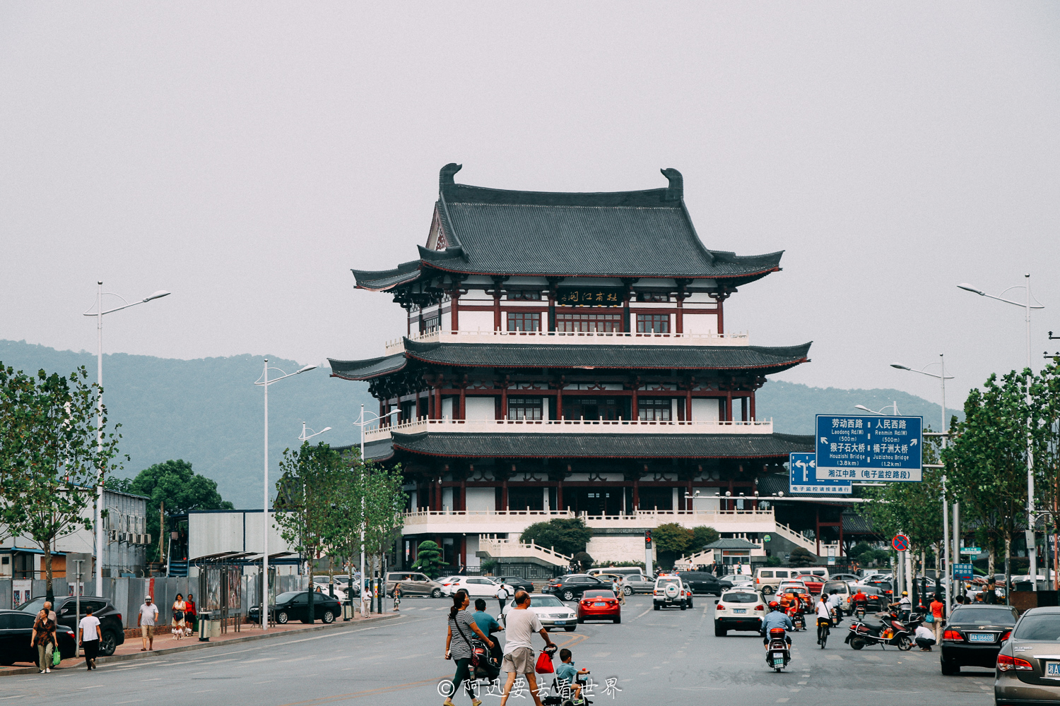 江阁是现代建筑,不过是看看泛黄的湘江和江心的橘子洲头,所以我没有花几十块登楼。但是如果晚上要看烟花,那这里绝对是绕不开的,杜甫江阁以及周边的公园全都会挤满人,一定要提早很多过来占位置。