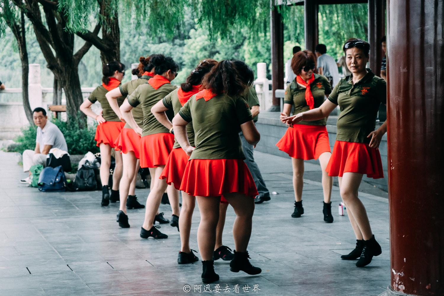 江阁前正好有活动,纪念毛逝世四十周年,一群爷爷奶奶们在合照、在唱歌、在奏乐、在跳舞。时间过得真快,对于我们这一辈来说,毛是个遥远的名字,但是对于老一辈来说就真的最深刻的青春回忆。