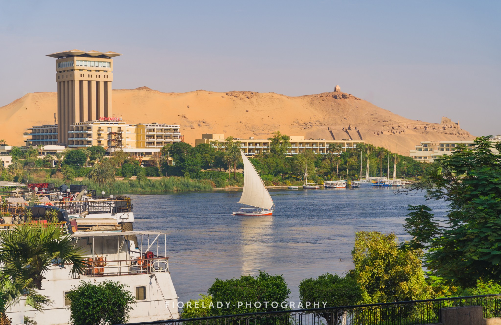 等待厨房给我们准备早餐的空隙,开始欣赏起对面的尼罗河景色,阿加莎·克里斯蒂一定也欣赏过阿斯旺清晨的模样