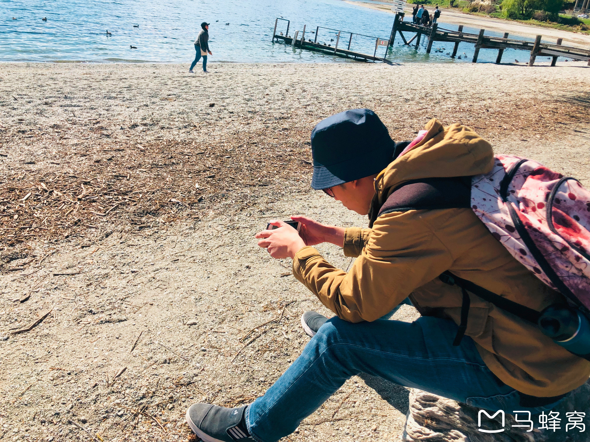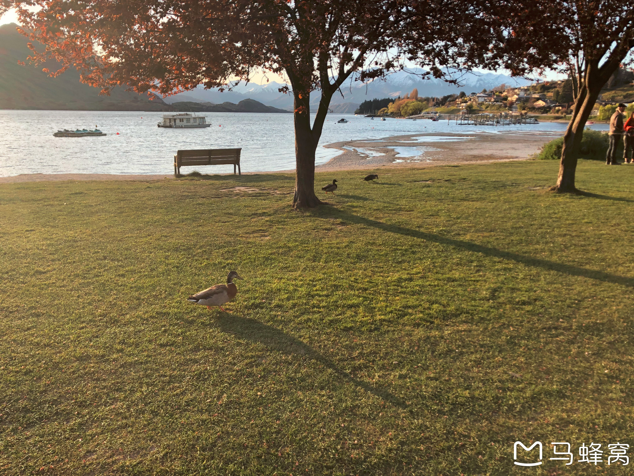 几步之遥的地方,鸭鸭们在湖边散步。