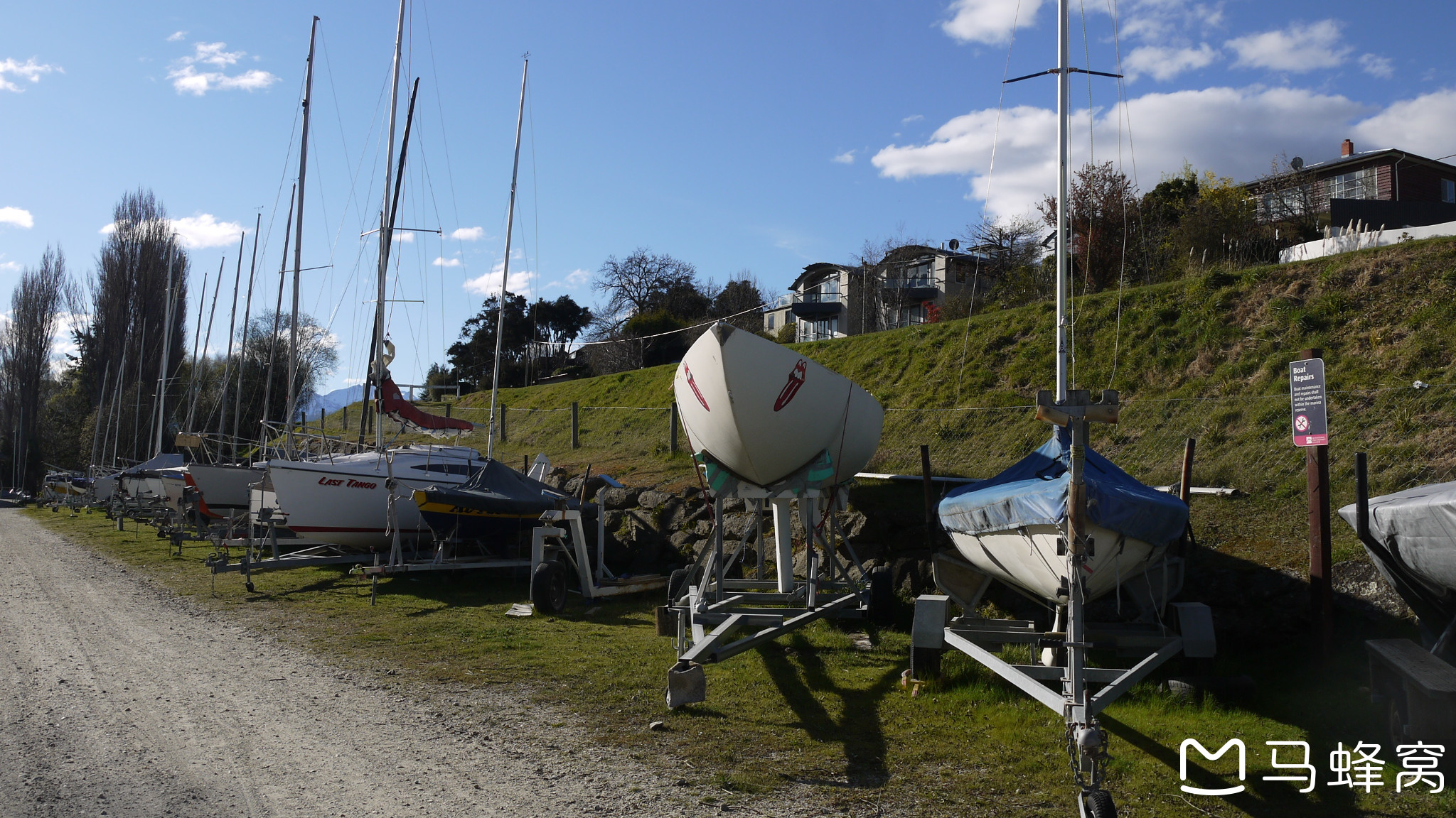 环湖往右边再绕半圈,发现一个私人帆船的停船场。