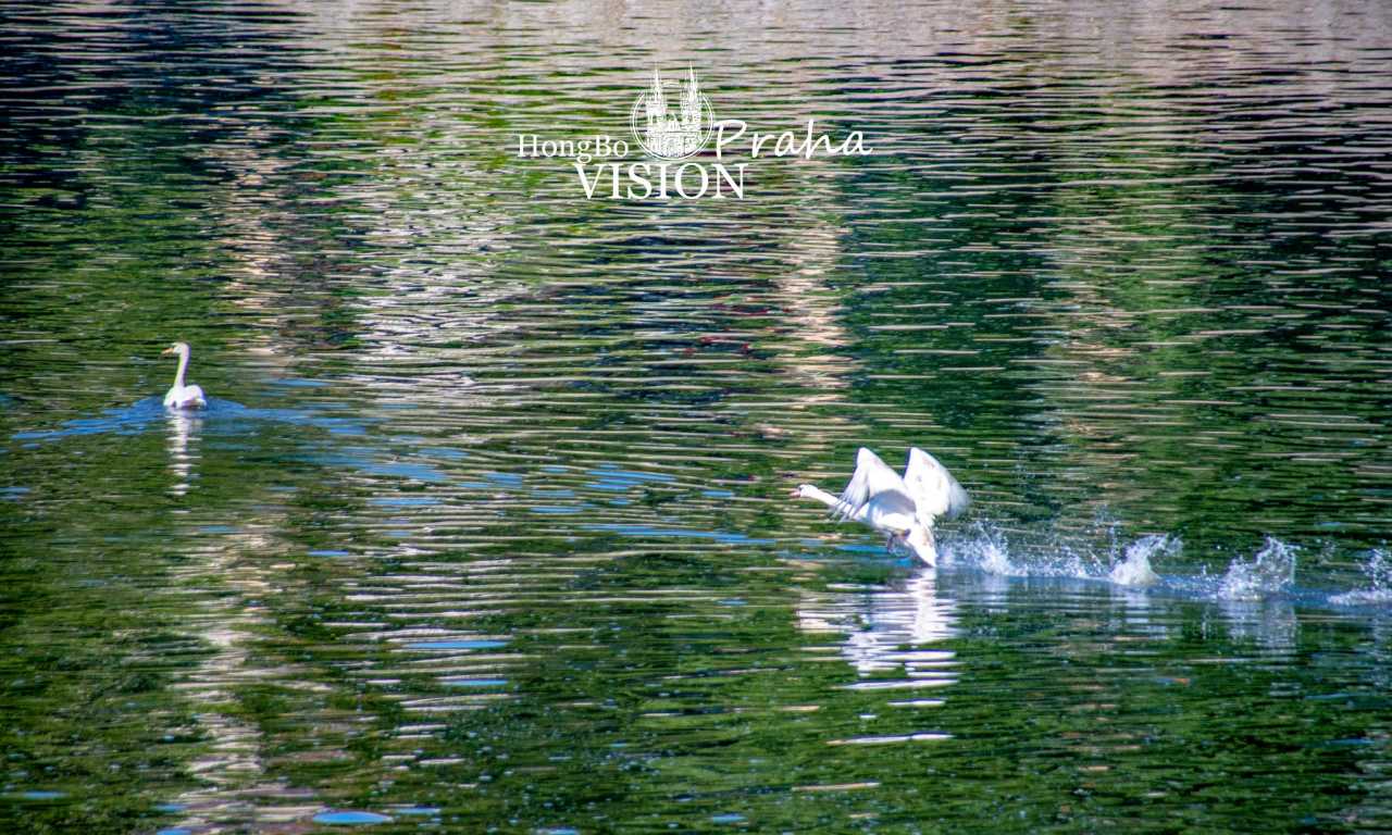 伏尔塔瓦河沿岸,河水静静地流淌,那两只小白是天鹅吗