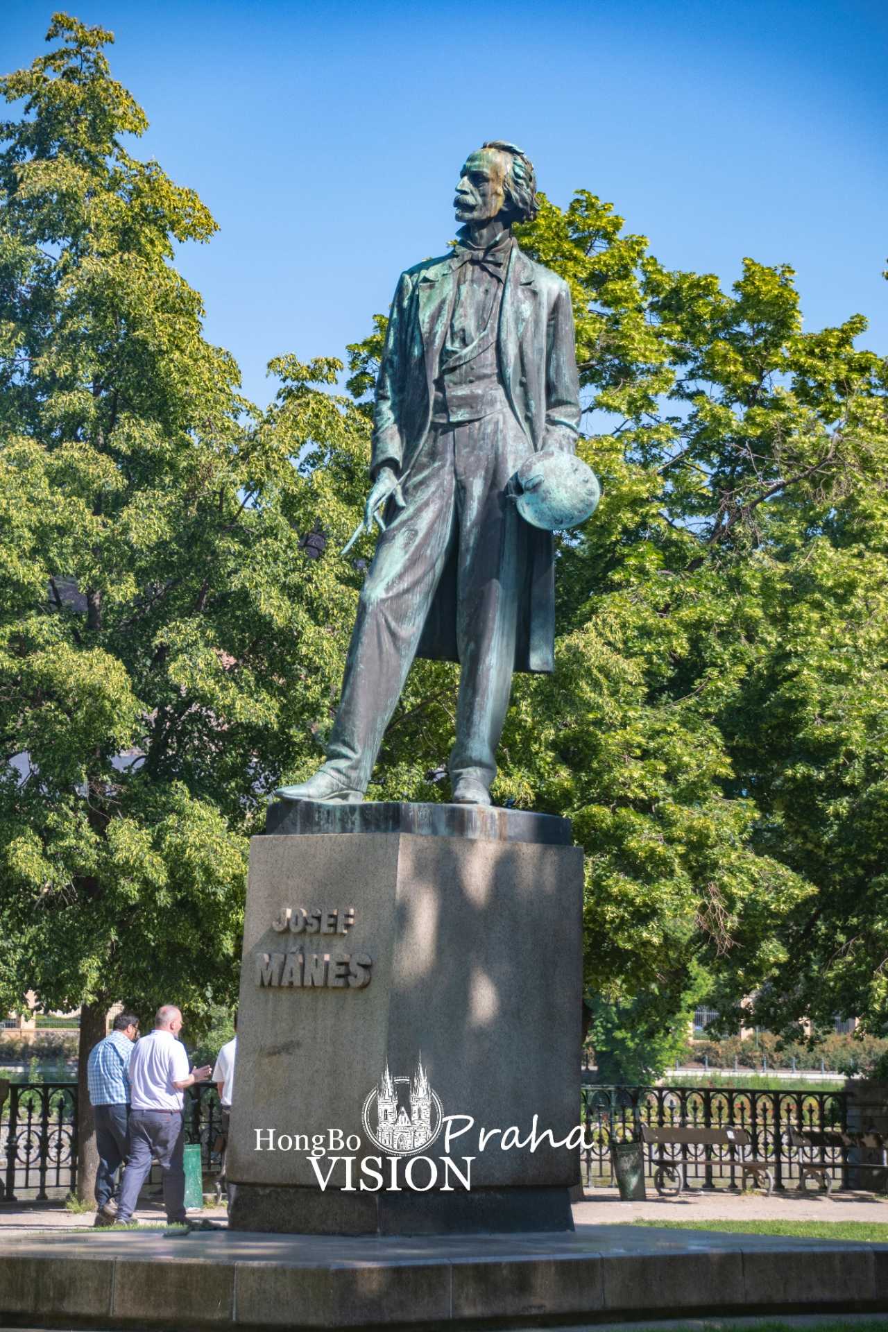 鲁道夫音乐厅旁的草坪上屹立着捷克近现代画家约瑟夫·马内斯的雕像 (Josef Manes 1820-1871捷克画家)旁边就是以他的名字命名的马内斯桥。