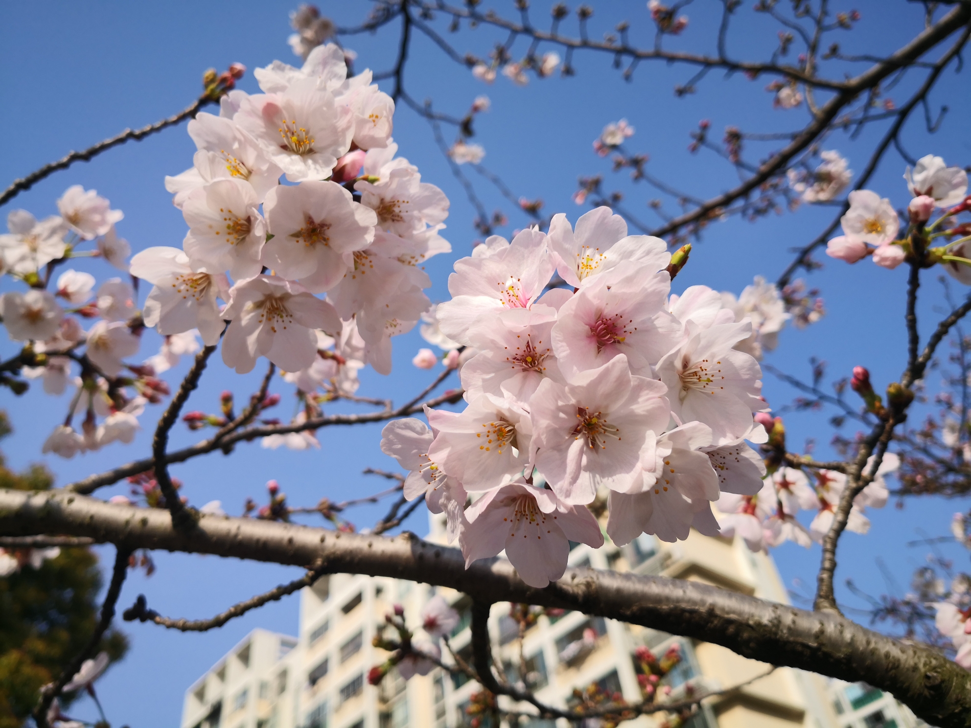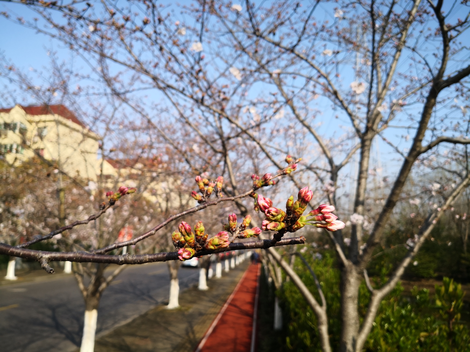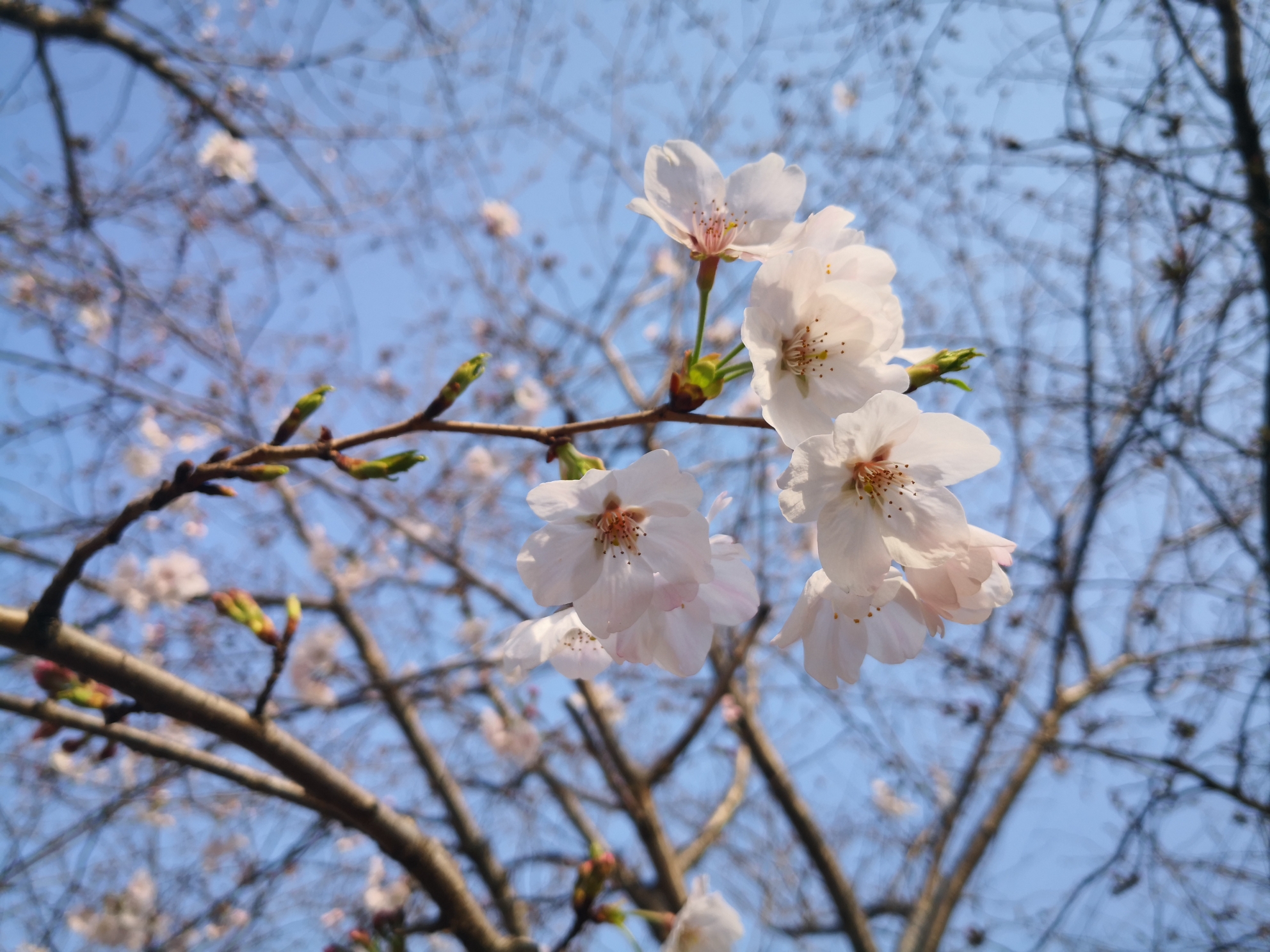 今天的樱花还比较稀疏,晚几天盛花期会更好。不过,本周三之后有雨,只能到下周看看天气情况了。只要是晴天,估计樱花就盛开了。