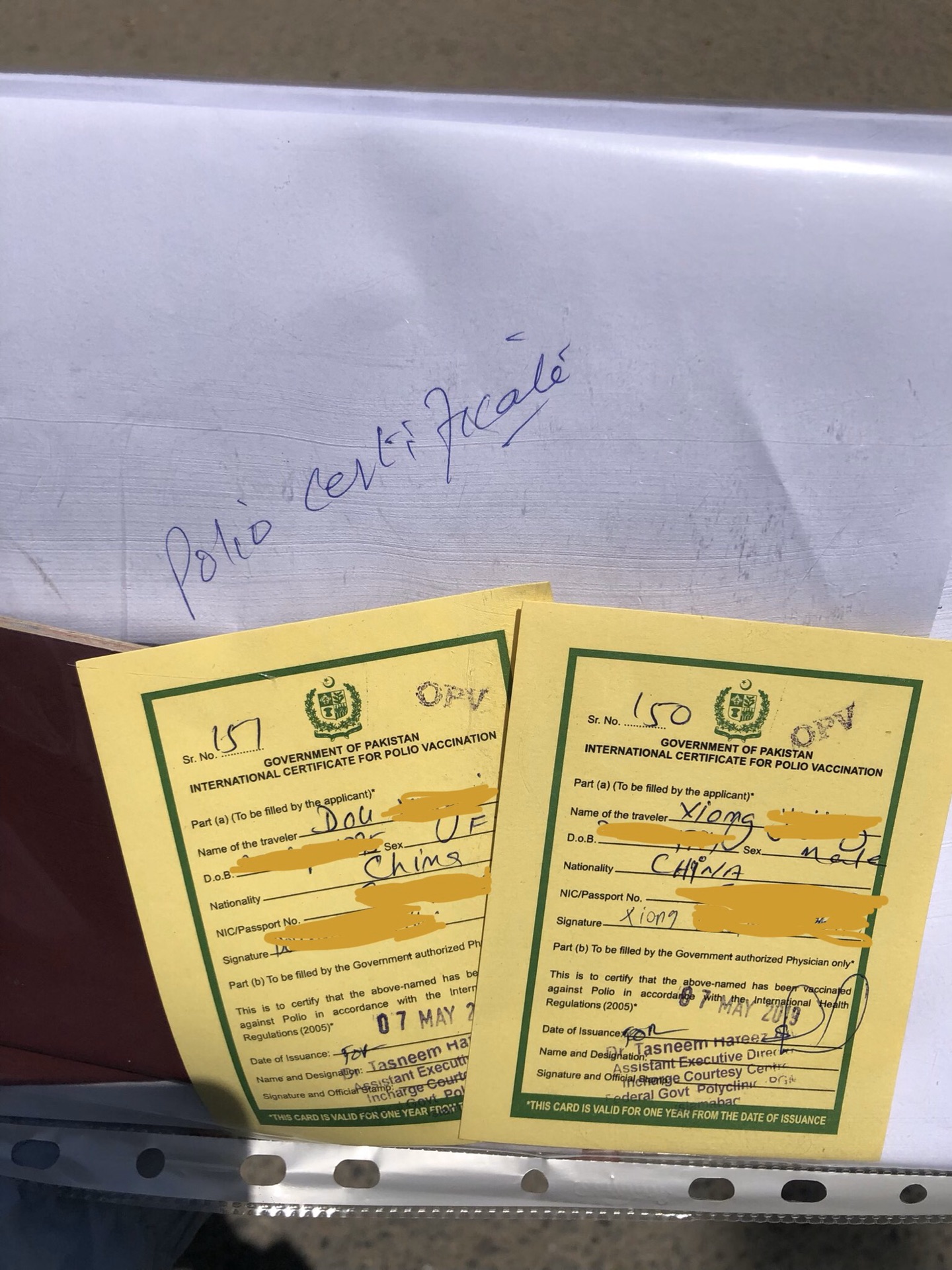 回到了TCS,被要求写一封信,信件内容包含:来巴目的,去印目的、巴基斯坦、印度停留天数等等。后要求Polio Certificate(vaccine)小儿麻痹症疫苗证书,于是我们又辗转了两个医院,最终在Polyclinic Hospital免费办理下来了,付出的代价就是喝了两滴超难喝的活体病毒疫苗。
