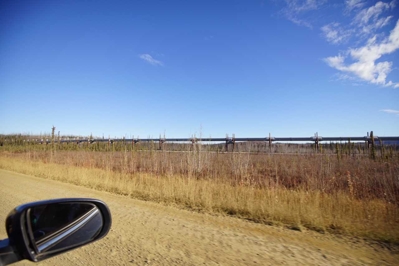 全球温室效应下的北极也比往年更热了,十月的阿拉斯加没有像往年般进入零下十余度的寒冷,天气仍然如秋日般清爽,更别提下雪了。这倒是给我们自驾带来了许多便利。道顿公路上一望无际,时不时能看到穿越整个阿拉斯加大陆的输油管道,剩下的,便只是无尽的山脉。