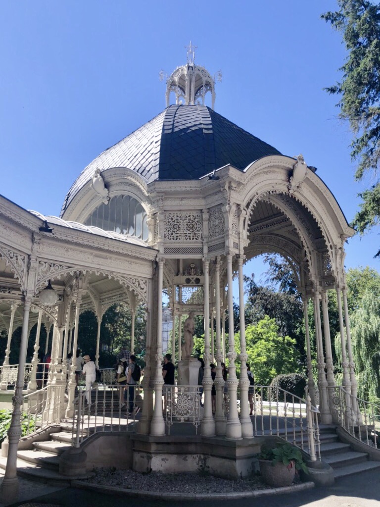 公园温泉回廊紧邻德弗札克花园,这座出现于1881年的回廊由两座青铜圆顶凉亭以白色铸铁长廊相接,纤细的雕花装饰图案异常优雅。这里有KV可直接饮用的12座温泉之一,提供温度47℃的温泉出水口。