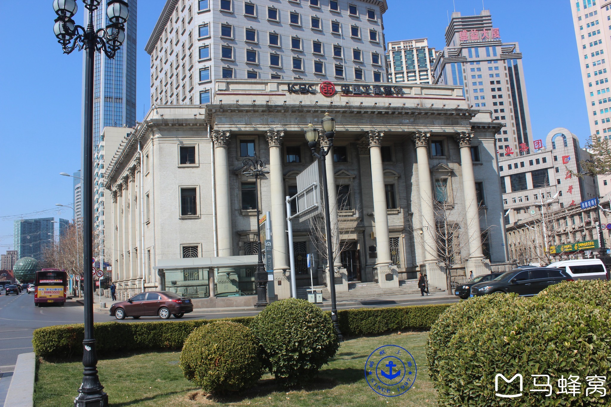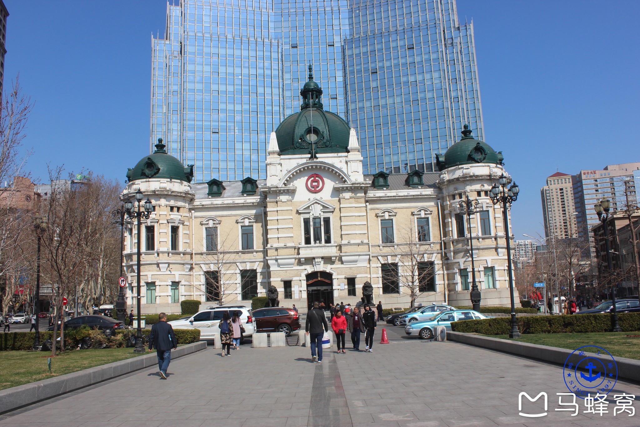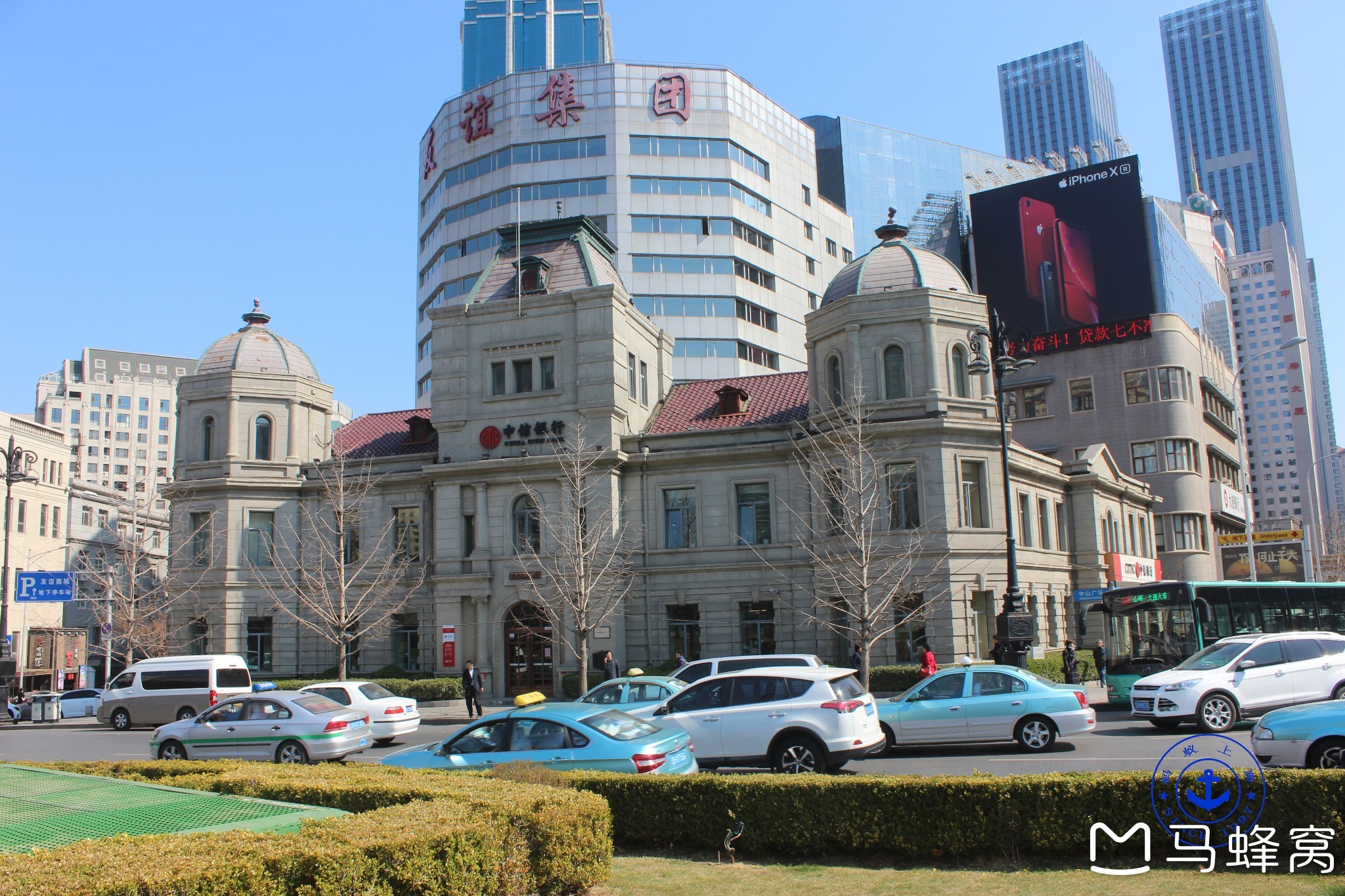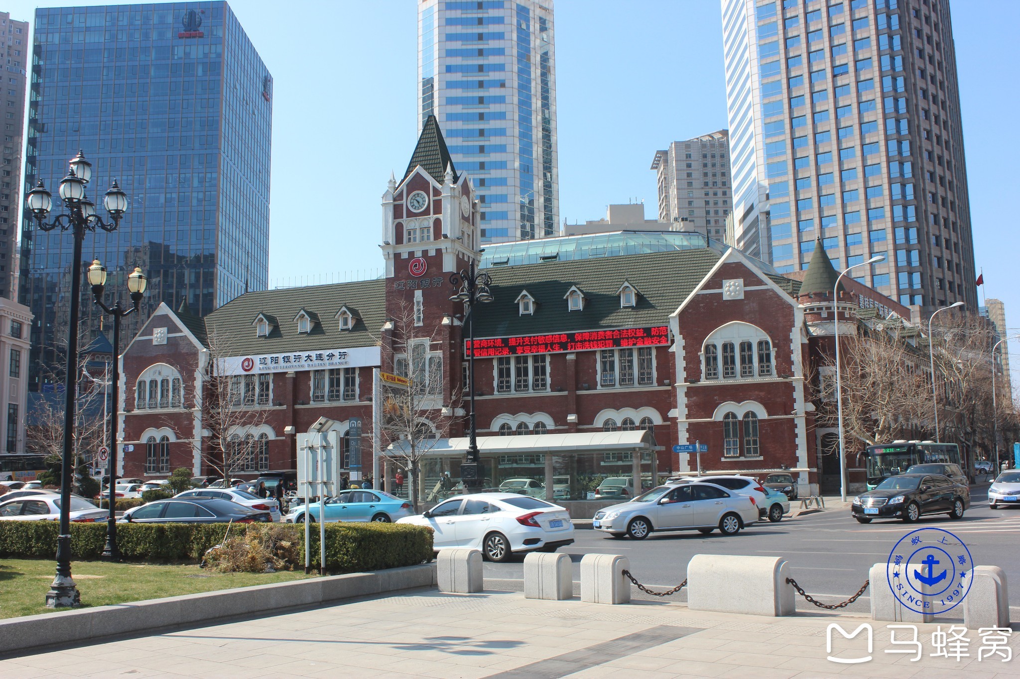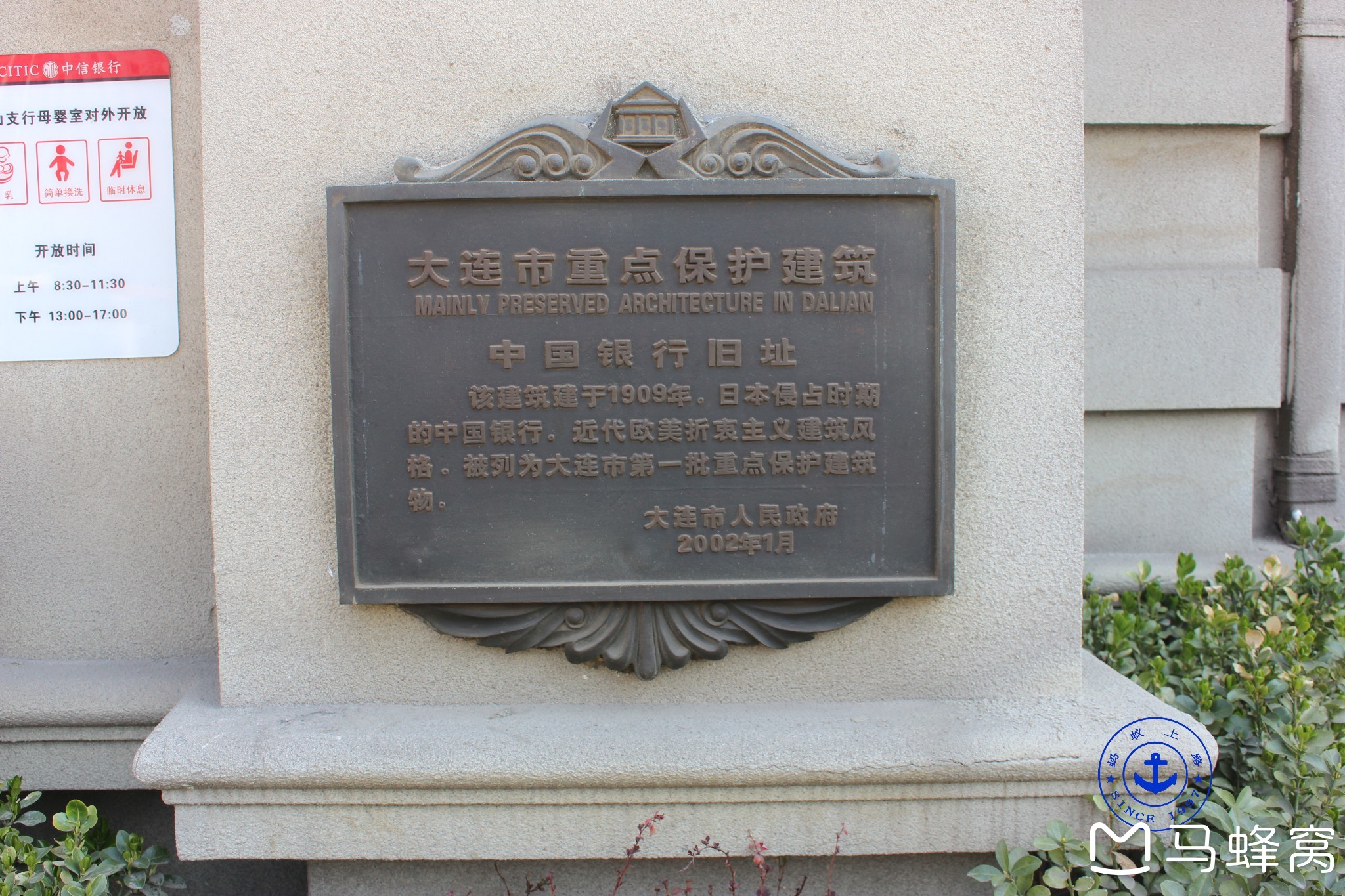 其中中国银行旧址,建于1909年,是日本侵占时期的中国银行,近代欧美折衷主义的建筑风格,于2002年1月被列为大连市第一批重点保护建筑物。