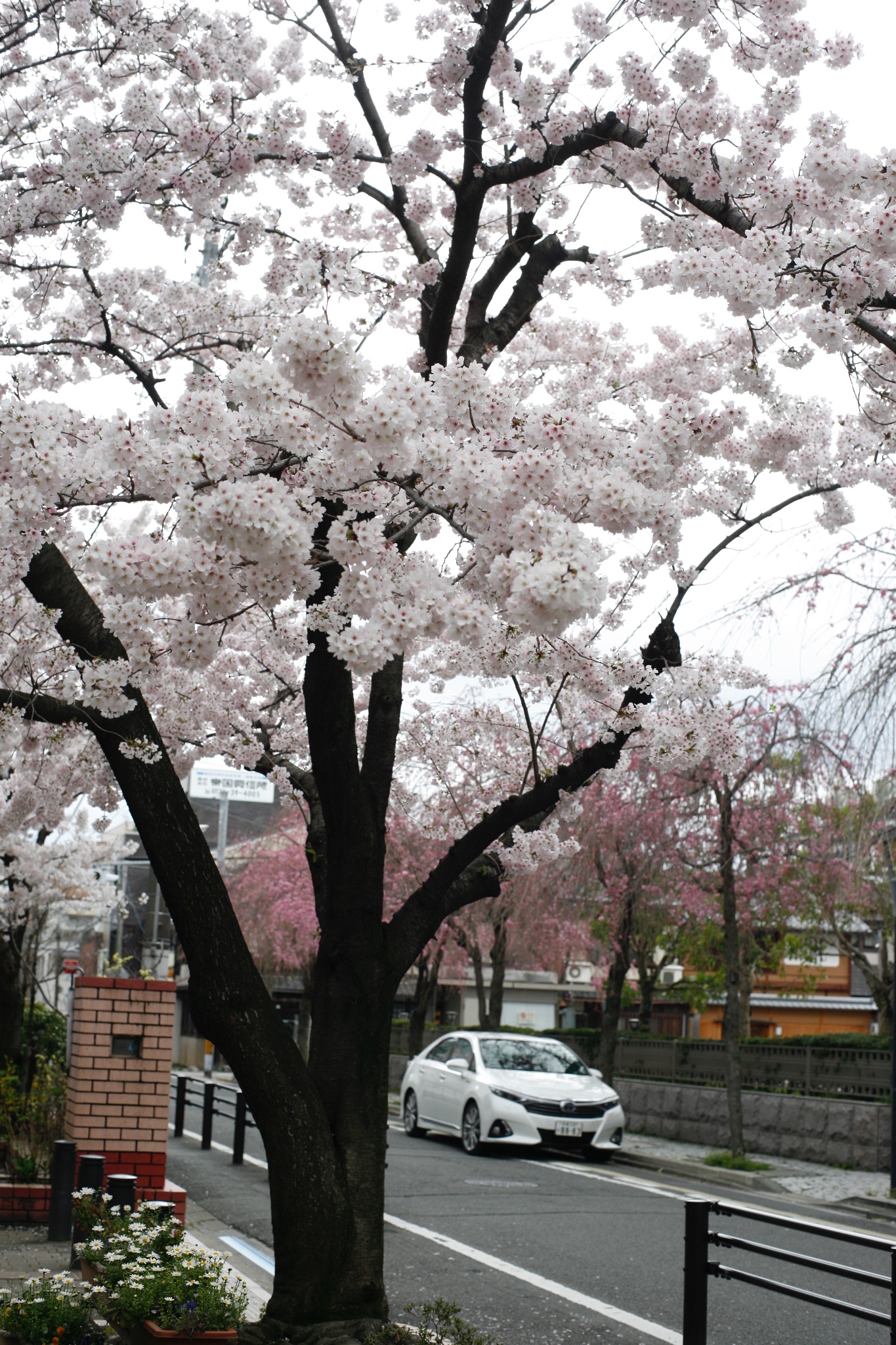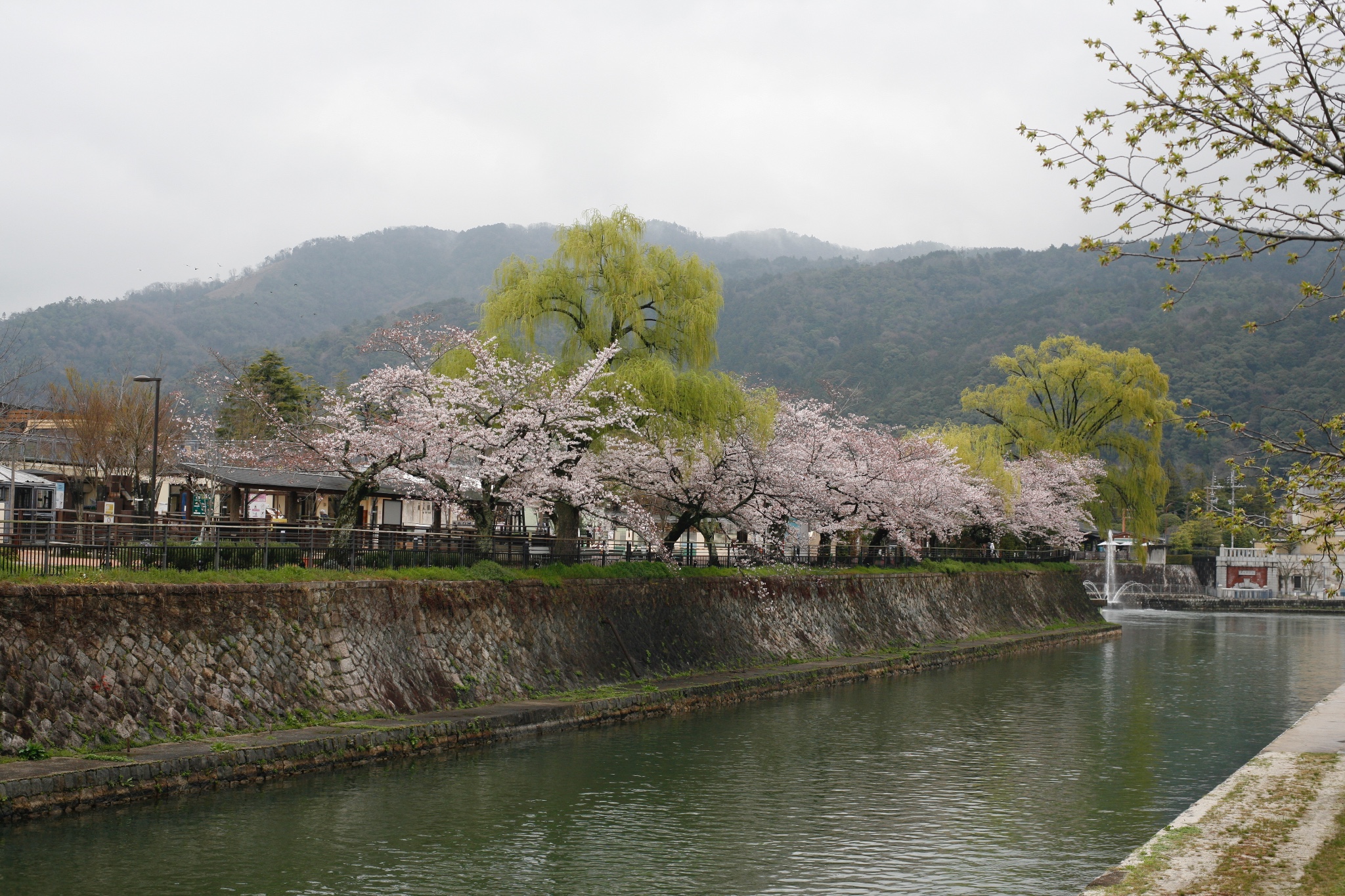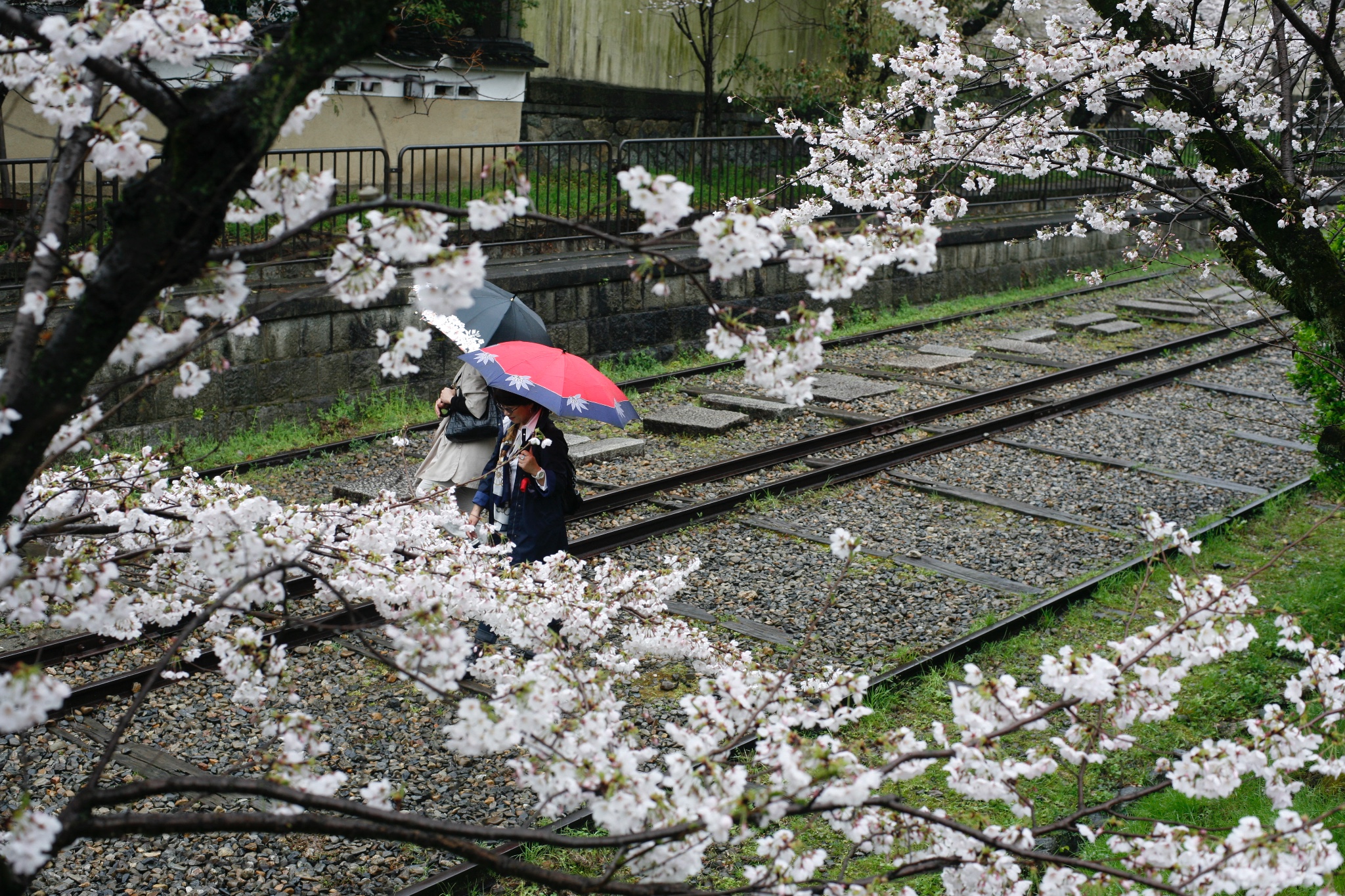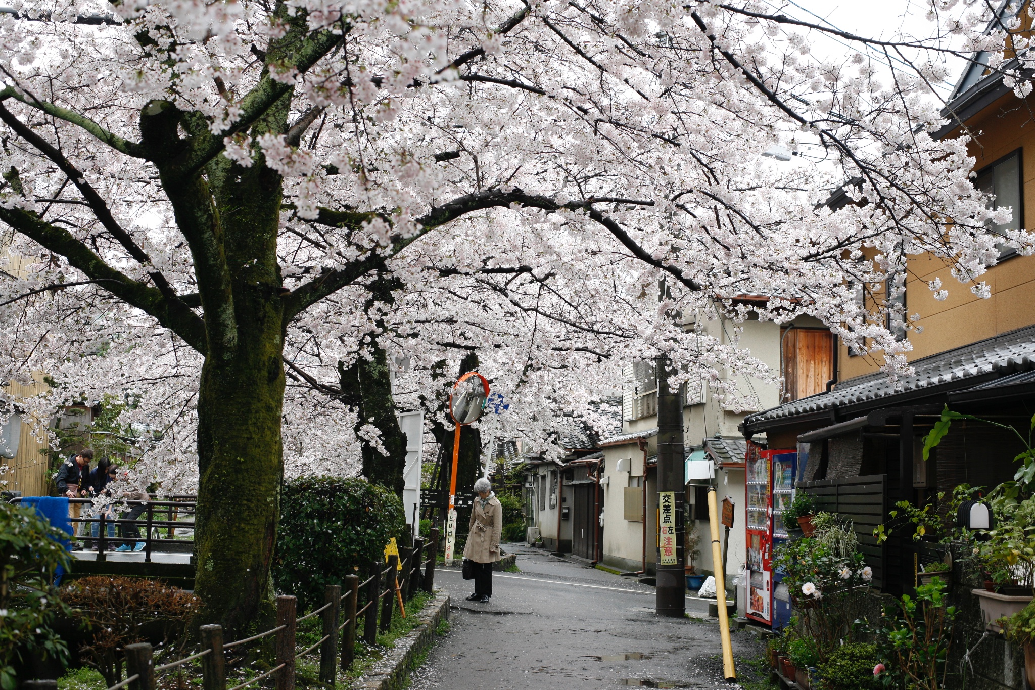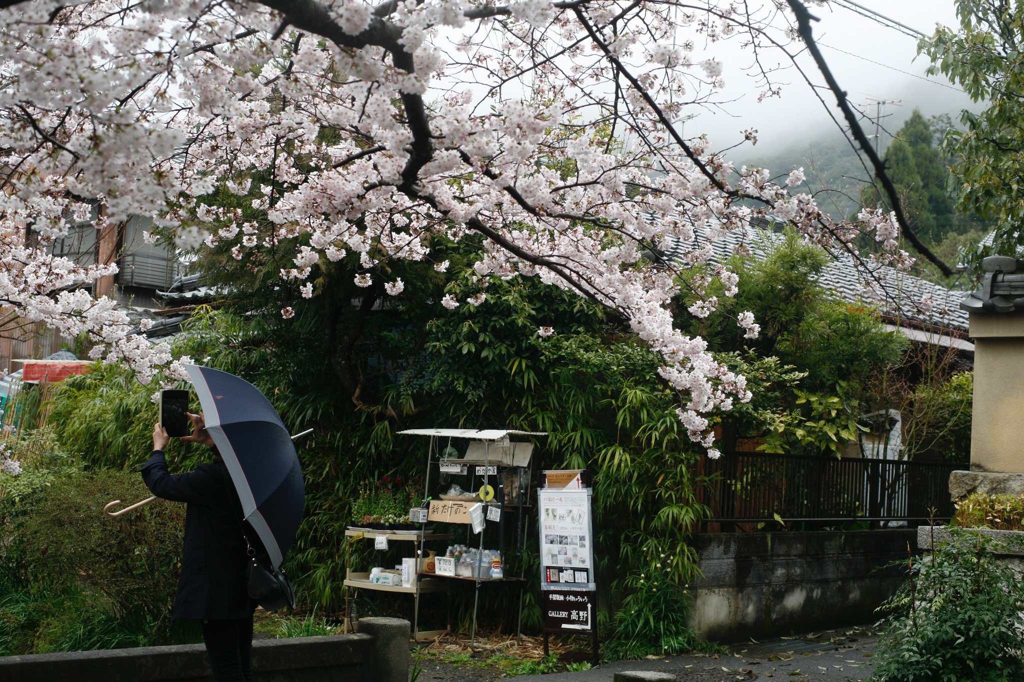 三面环山的京都河川密布,气候湿润多雨,四月里亦是终日绵绵细雨的感觉。面对时落时歇的雨水,我并未觉得苦恼,却深感其妙,觉得濛濛细雨下的樱花,更有一种难以言说的韵意隐隐传来。