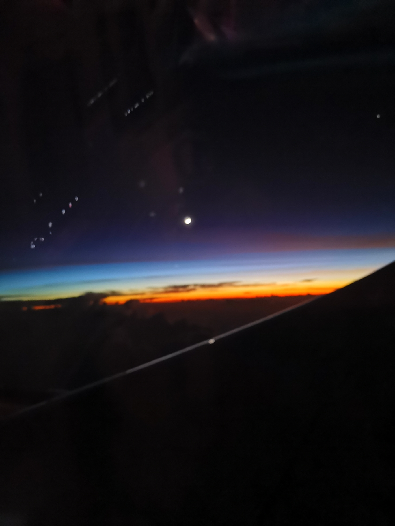 飞机上看到的月亮,照片拍不出效果,但肉眼可以清晰的看到上班部分被遮住,露出下半部分弯弯的月牙!