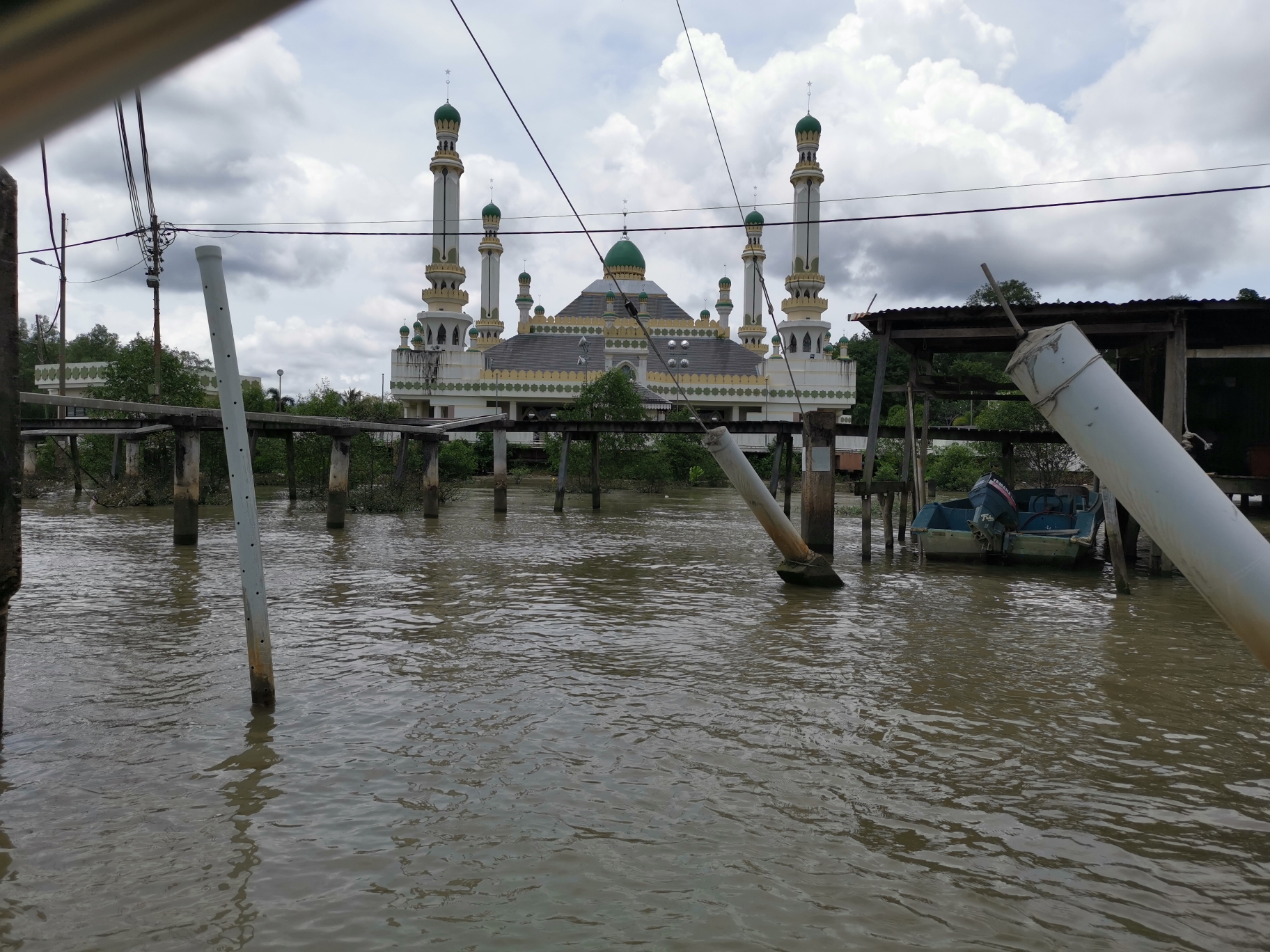 在清真寺门口,碰到了拉水上村生意的人,出价40刀带我们到水上村参观并看长鼻猴,知道网上攻略要价一般30,但是懒得大热天跟他讨价还价了,爽快的同意,他开车把我们送到码头。