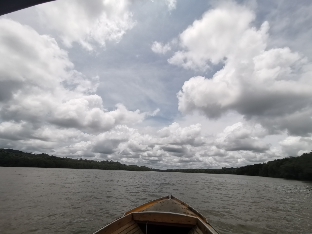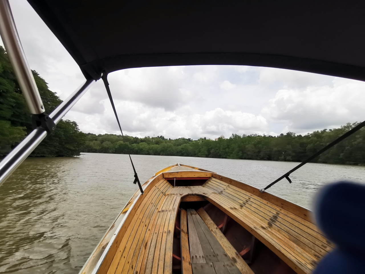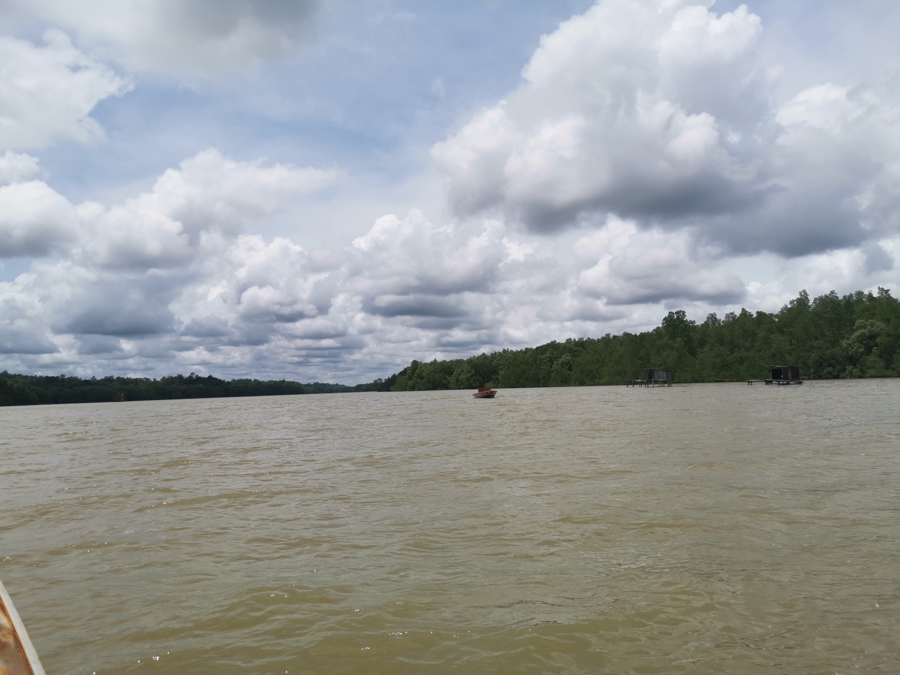 上船后,发现这里的水上村就是当地的贫民窟,环境比较差,水非常的脏,文莱河上漂满了各种垃圾,让人作呕!拉我们的船夫说船没有油了,加个油再走。他在水上村边上穿梭着,船开到一家简陋的水上木屋下面停下来,我们先购买了添加剂,然后在加油的木屋下面停下来,有当地人从阳台上探出头来,拿根绳子吊着小篮子收了钱,然后丢下来一根管子加油!油加好后,船夫载着我们沿着文莱河一路疾驰,出了水上村,远离人群居住的地方,水面上的垃圾逐渐消失不见了,水变得干净了许多,河边两岸是茂密的热带雨林。船夫说长鼻猴就住在河边的树林里面。他会指给我们看。