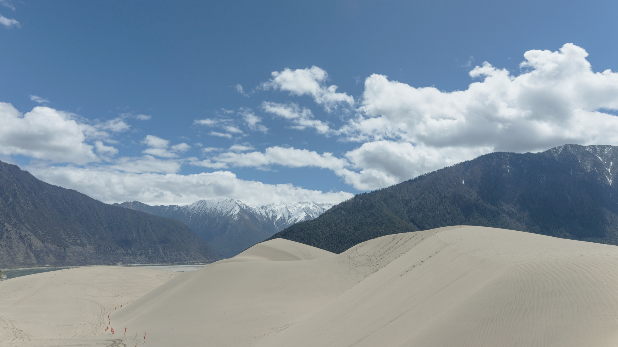 首先路过的是雅鲁藏布江的支流尼洋河,清澈、翠绿、洁白,三种颜色交织,效果是纷纷攘攘、难分难辨地交融在一起的。飞起我的小飞机,用俯视的角度来看尼洋河,沼泽纵横,河水冲积的沙丘洁白如玉。