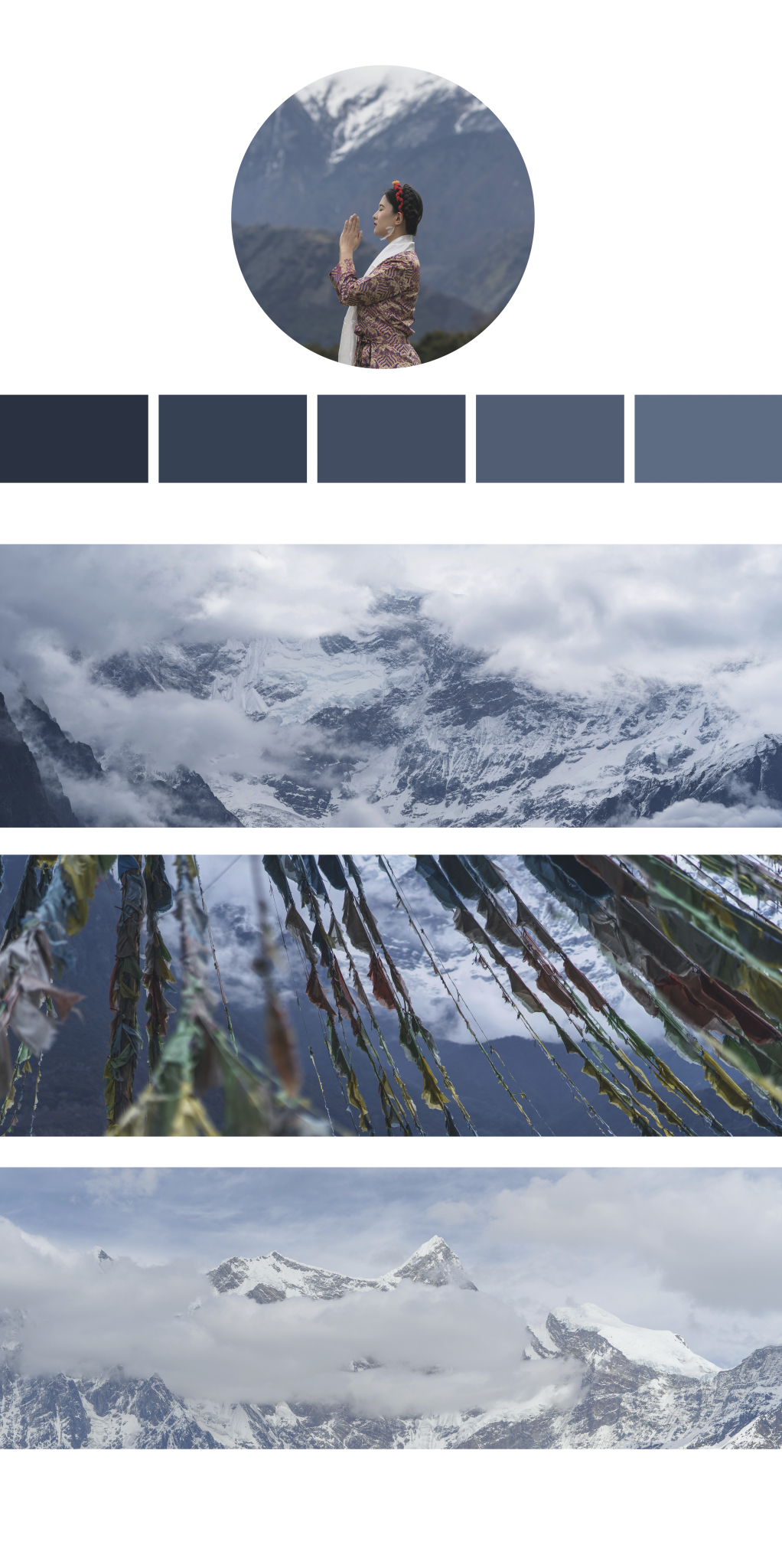 蓝色是这里最丰富的颜色,深蓝色的雪山,淡蓝色的天空,青蓝色的高原湖泊。