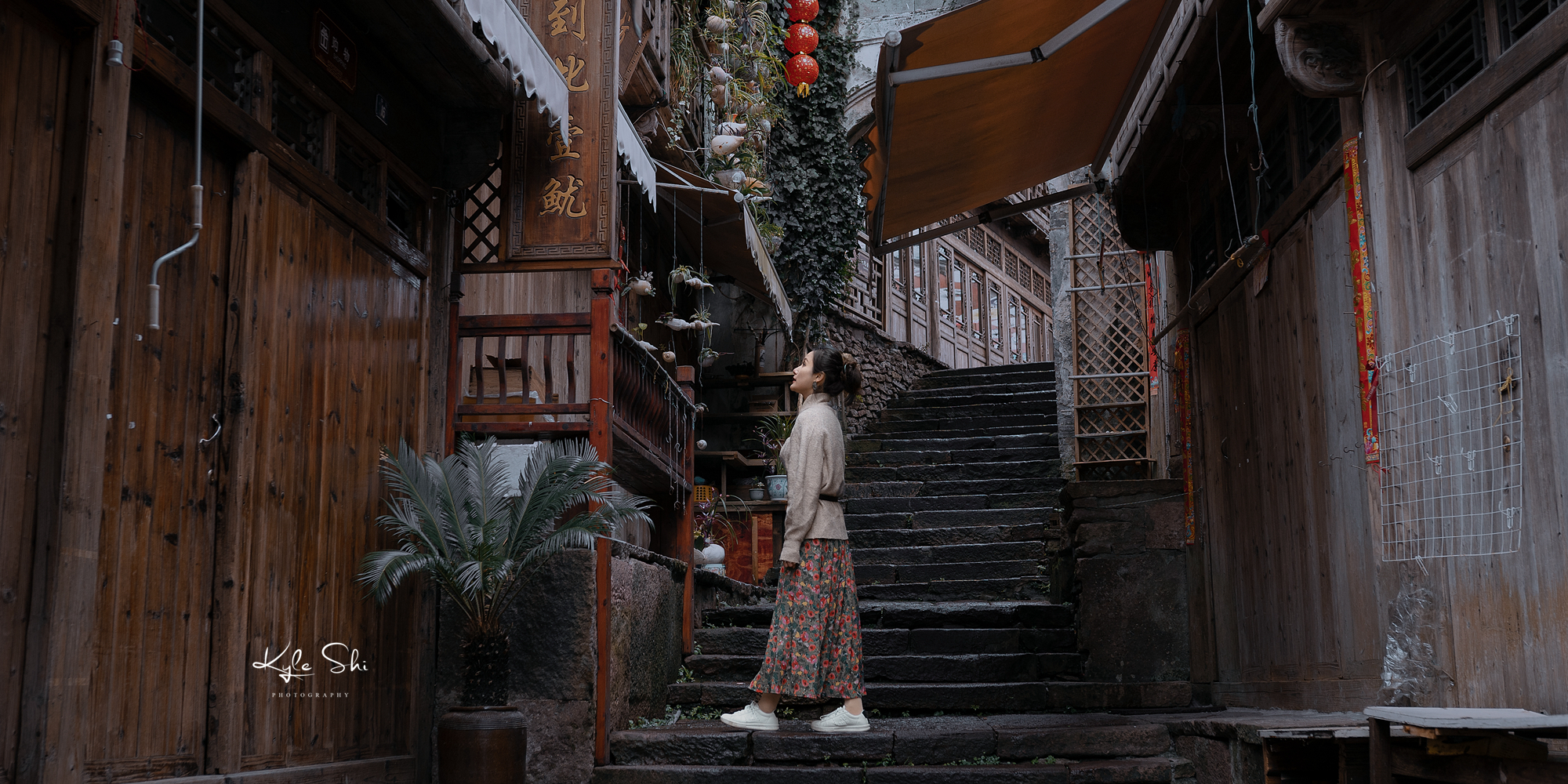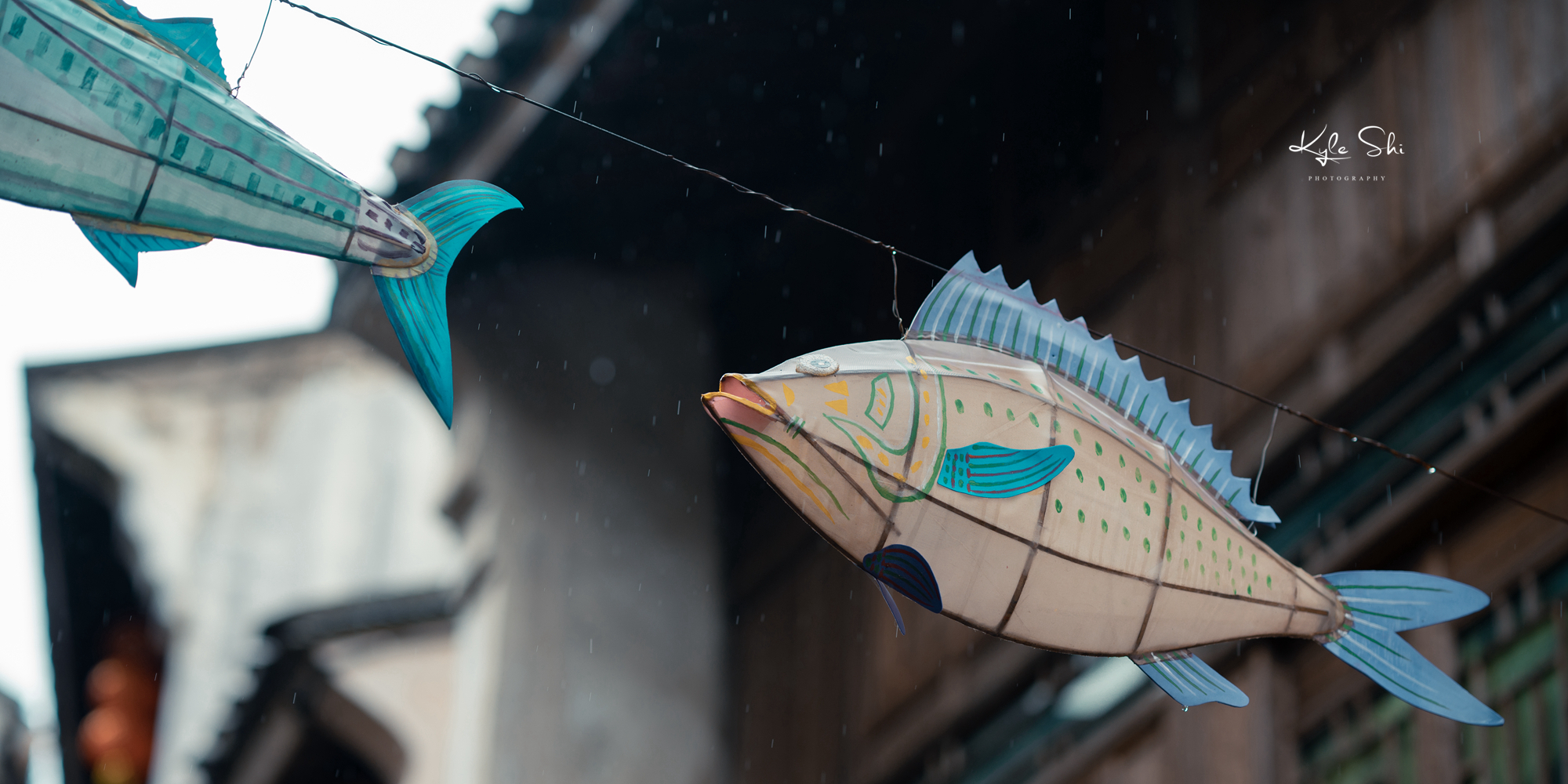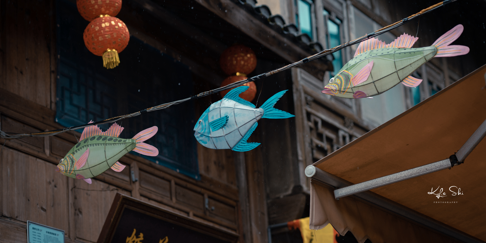 顺着古城的入口一路走,古味盎然的明清建筑、鳞次栉比的商户、起起伏伏的青石板路、旖旎有趣的渔灯、吊挂成串的海螺花……一条灰色调的老街就这样被居民们装点得色彩斑斓、透显着古街的氛围,生活气息十足。